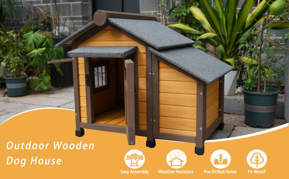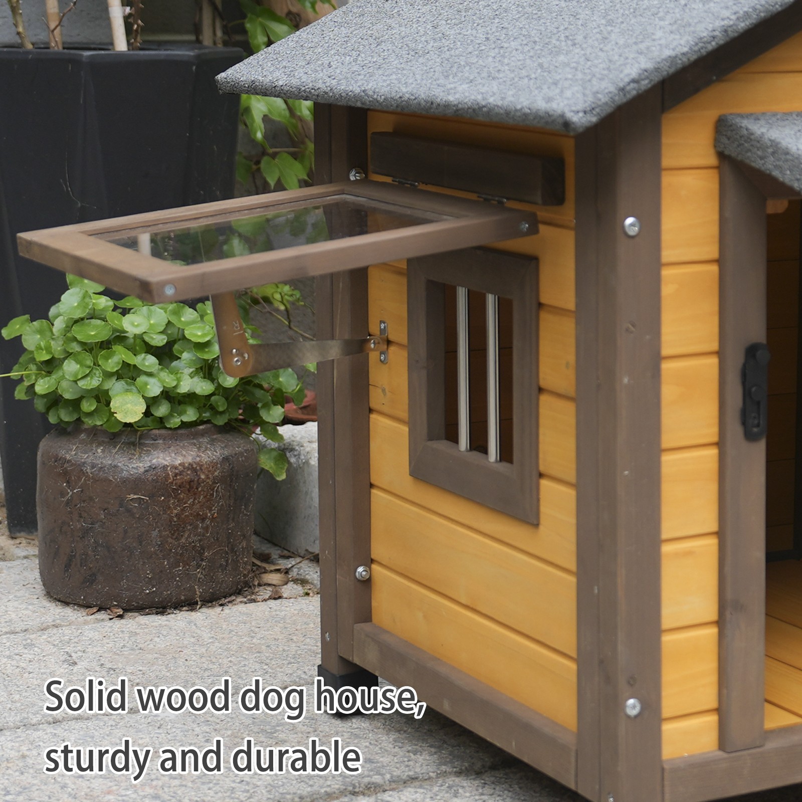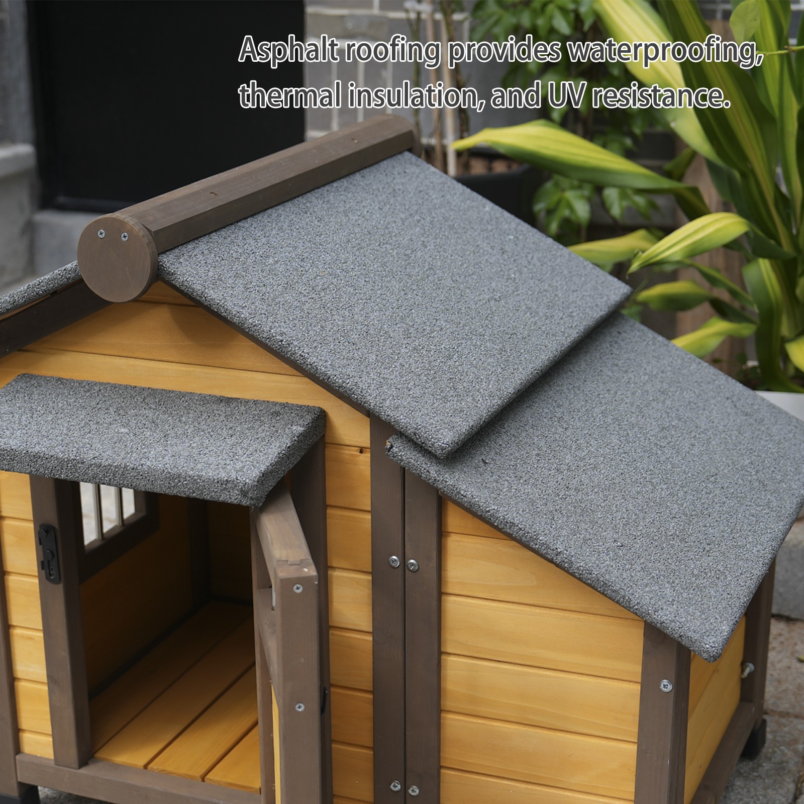 45 Solid Wood Dog House Outdoor Waterproof Insulated Dog Kennel w/Lockable Door