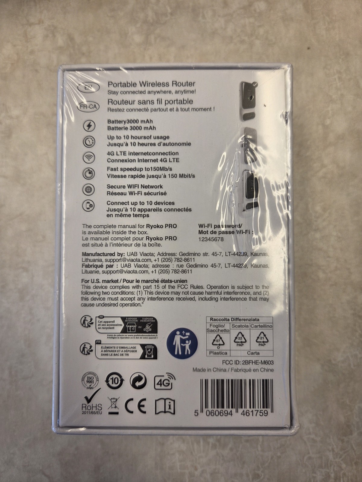 Ryoko Pro High-Speed Portable 4G LTE Wi-Fi Router- New