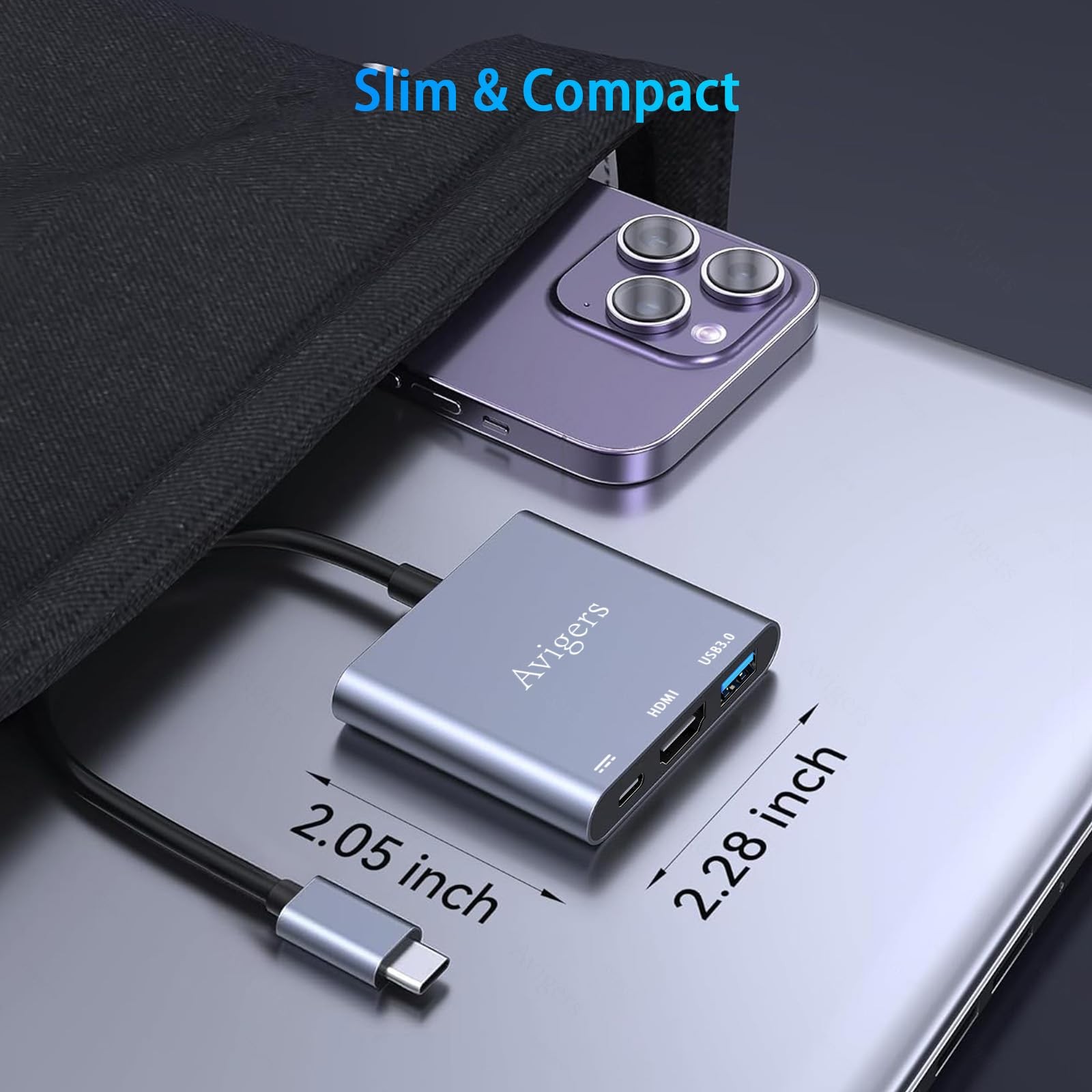 USB C to HDMI Adapter, 4K 3 In 1 C Silver Gray