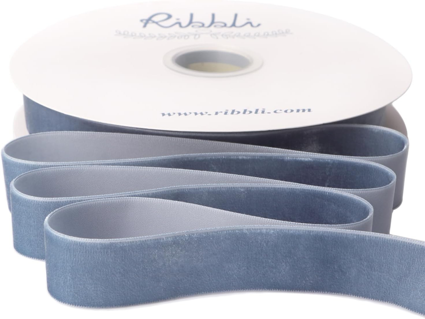 как выглядит Dusty Blue Velvet Ribbon 1 Inch x 25 Yards Single Face Ribbon for Crafts фото