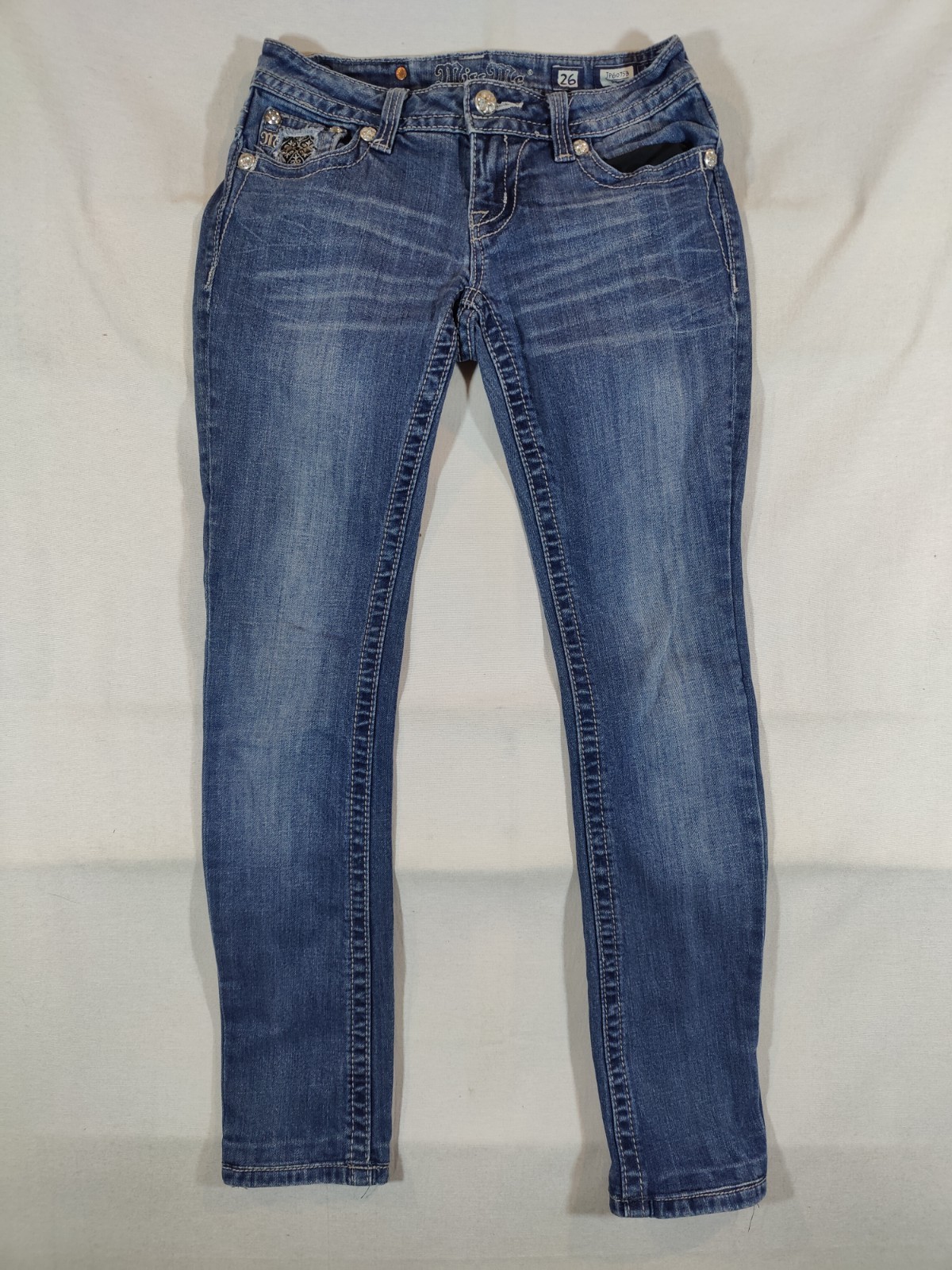 как выглядит Miss Me Jeans Womens 26 Skinny Low Rise Embellished Flap Pocket Denim Blue фото