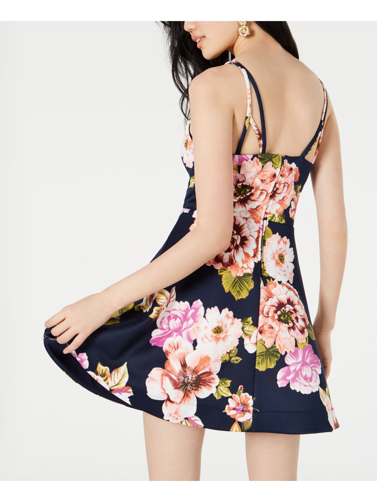 SPEECHLESS Womens Navy Floral Sleeveless V Neck Mini Party Fit Flare Dress 3