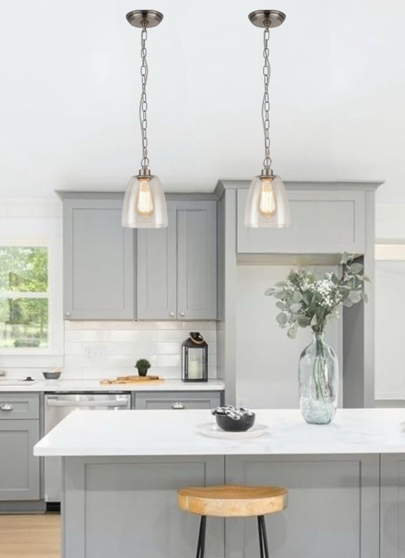 2-Pack Pendant Lights Kitchen Island, 7 Hanging Light with Clear Glass