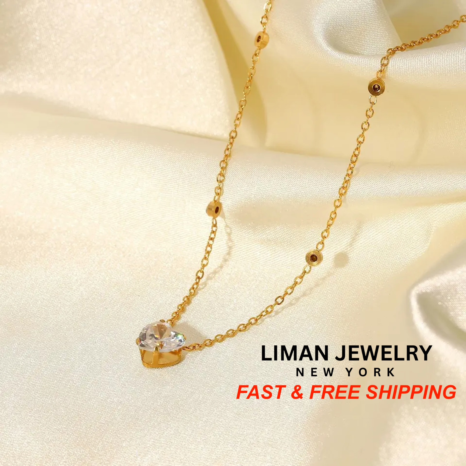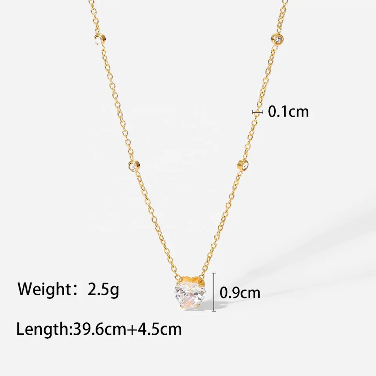 Women's Necklace Clear Heart Zircon 18K Gold Stainless Steel WATERPROOF 58