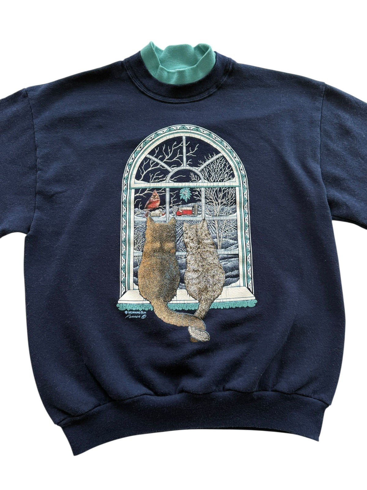 Vintage Cat Sweatshirt Cozy Winter Window Scene M