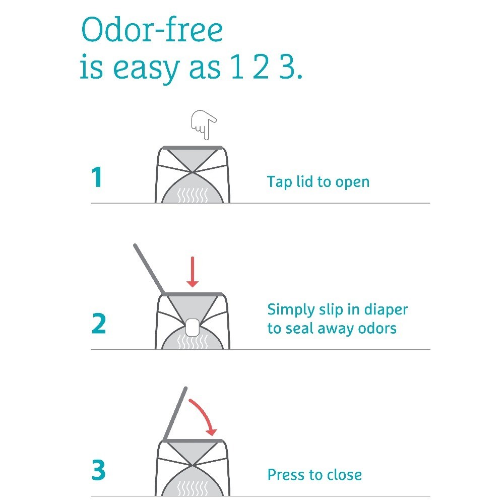 как выглядит Compact Odor Control Diaper Pail with Tap to Open Lid in White фото