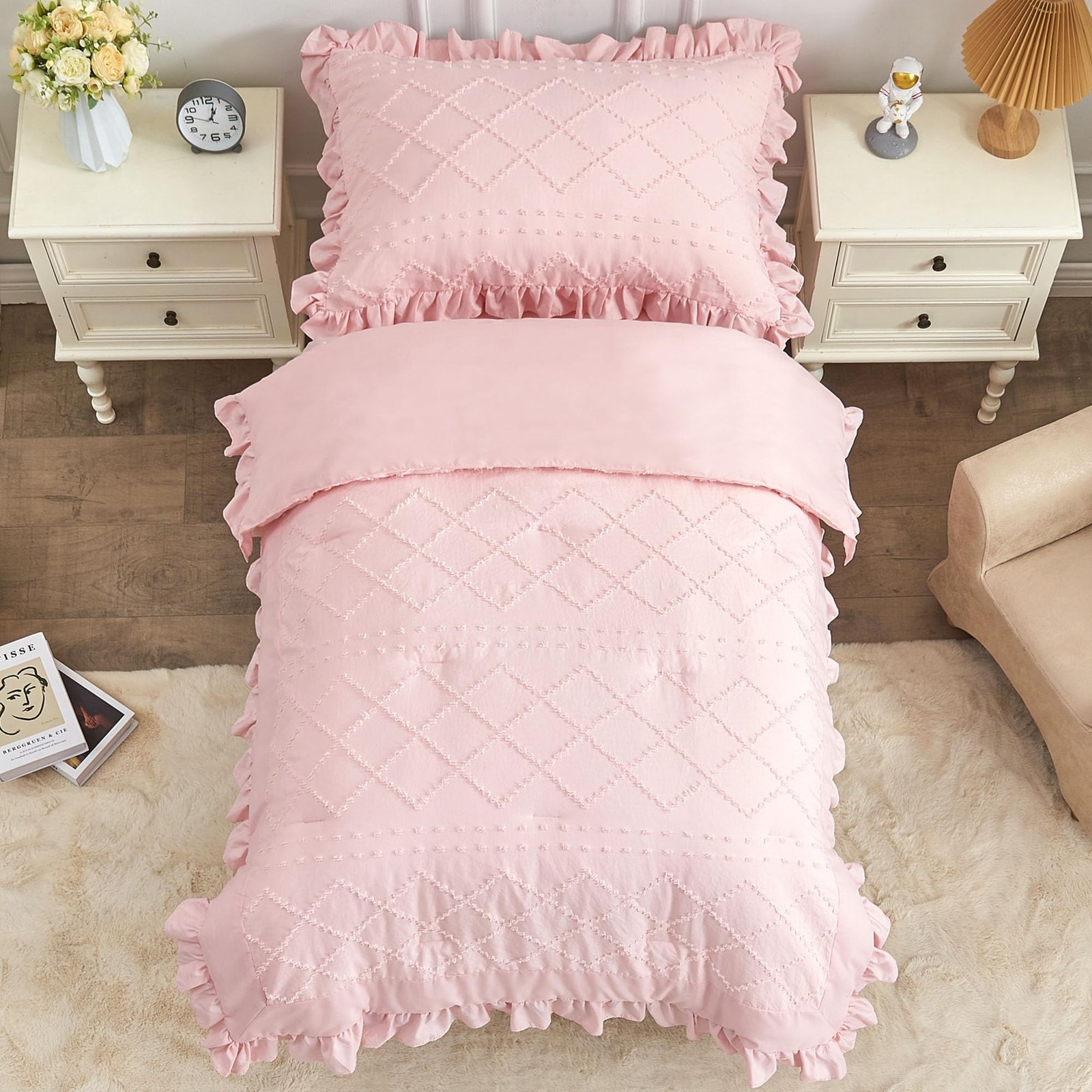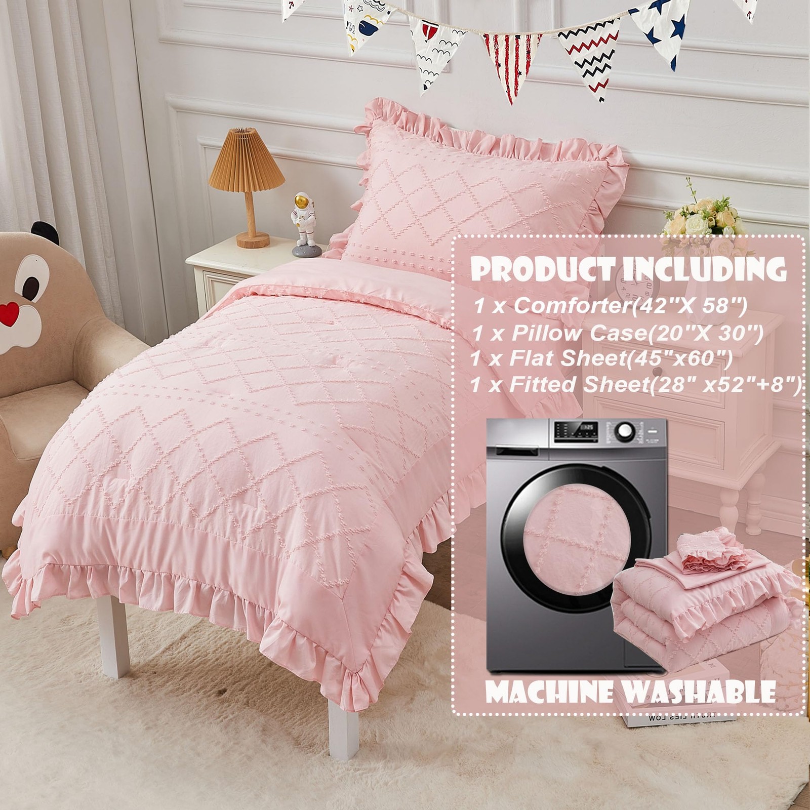 Toddler Bedding Set for Girls 4-Piece Boho Tufted Pink Toddler Comforter Set ...