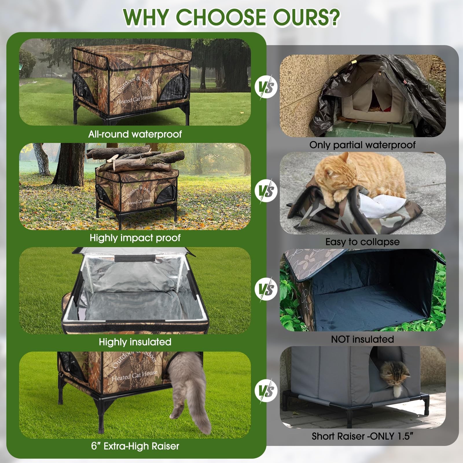 Heated Cat House for Outside, Upgrade Insulated Weatherproof Heated Outdoor...