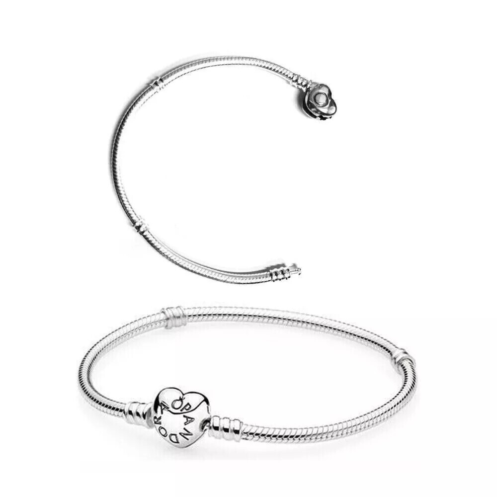 PANDORAMoments Heart Clasp Snake Chain Bracelet S925 Sterling Silver
