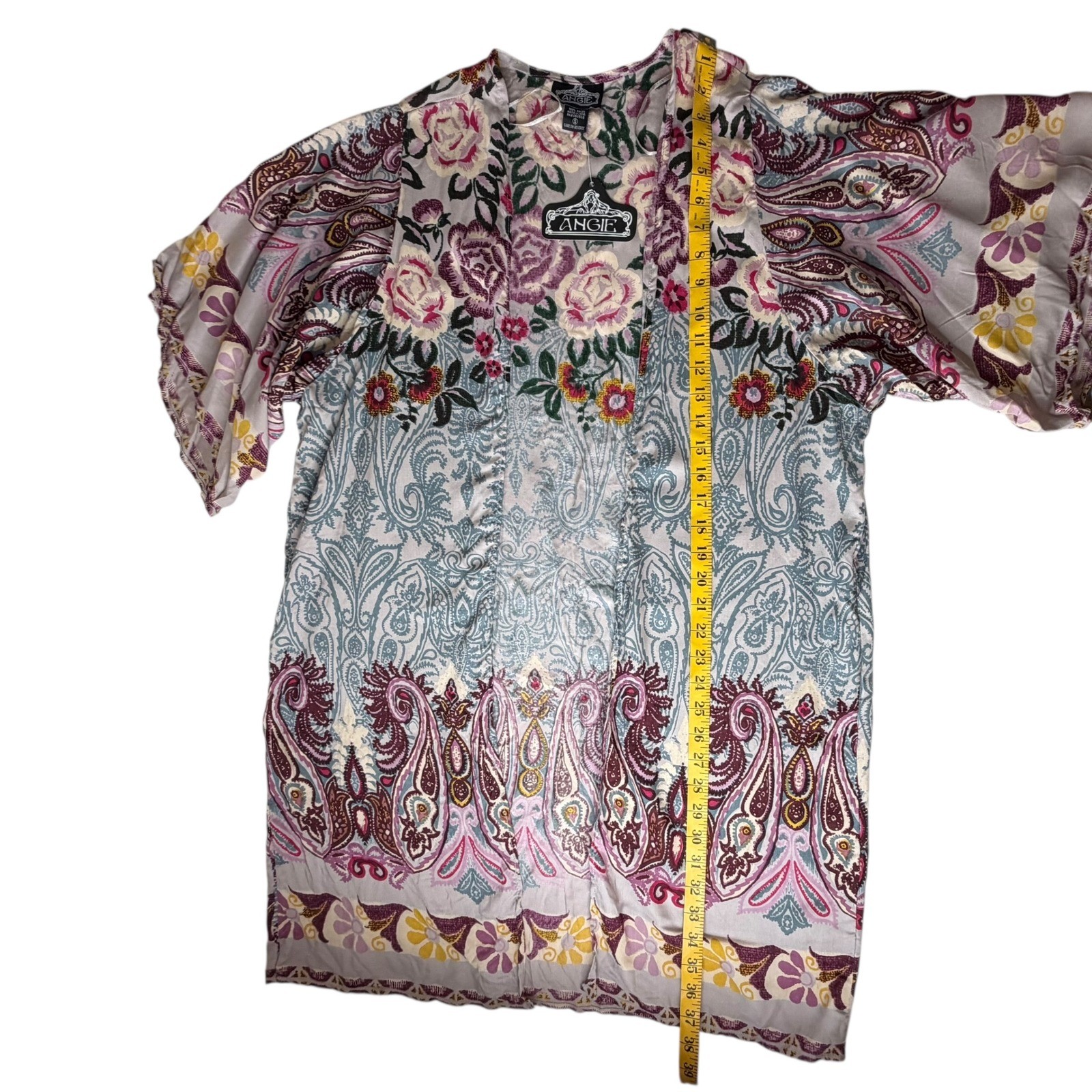 как выглядит NWT Angie Floral Paisley Kimono Small Multicolor Open Front Lightweight Boho фото