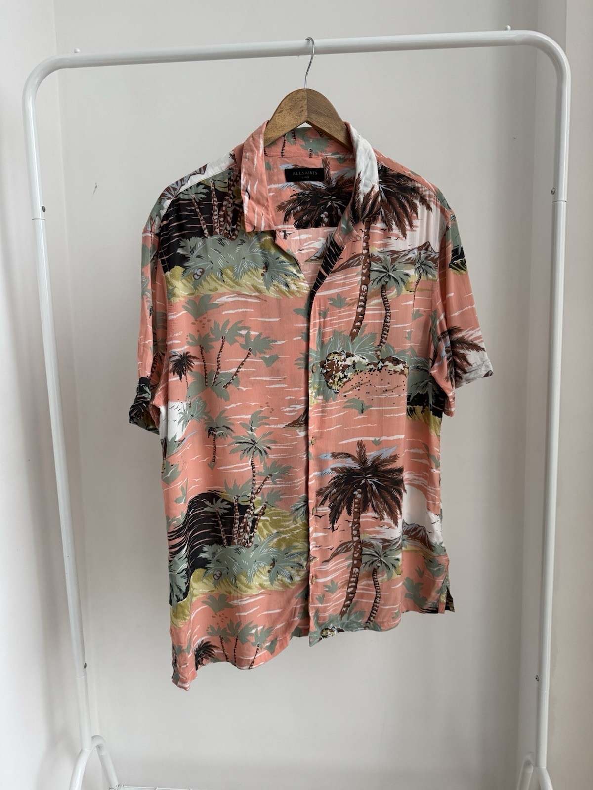 как выглядит All Saints Luau Short Sleeve Shirt Mens Size L Hawaiian Palm Trees фото