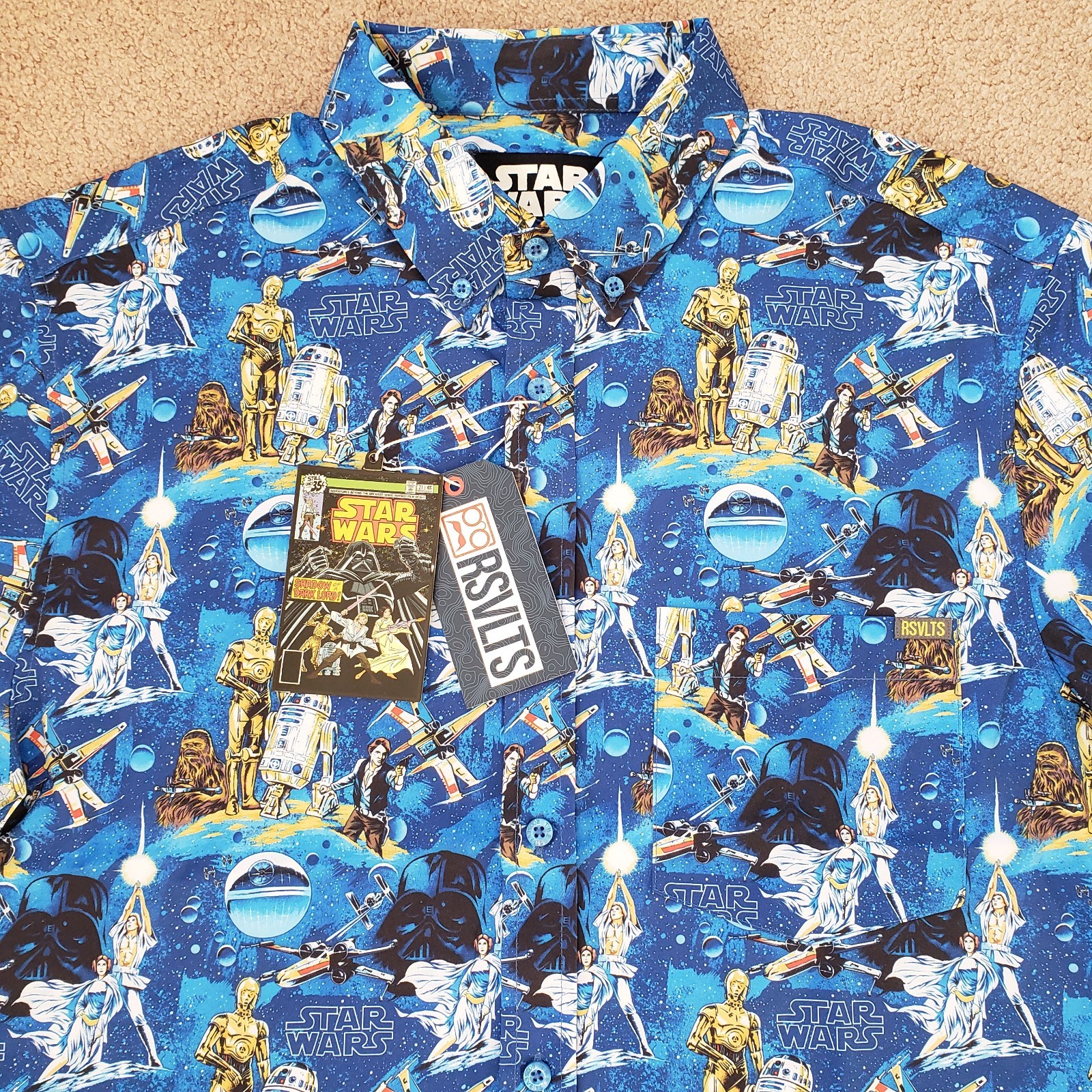 RSVLTS X Star Wars Luke Sleepwalker Size Medium Mens Blue KUNUFLEX Button Shirt