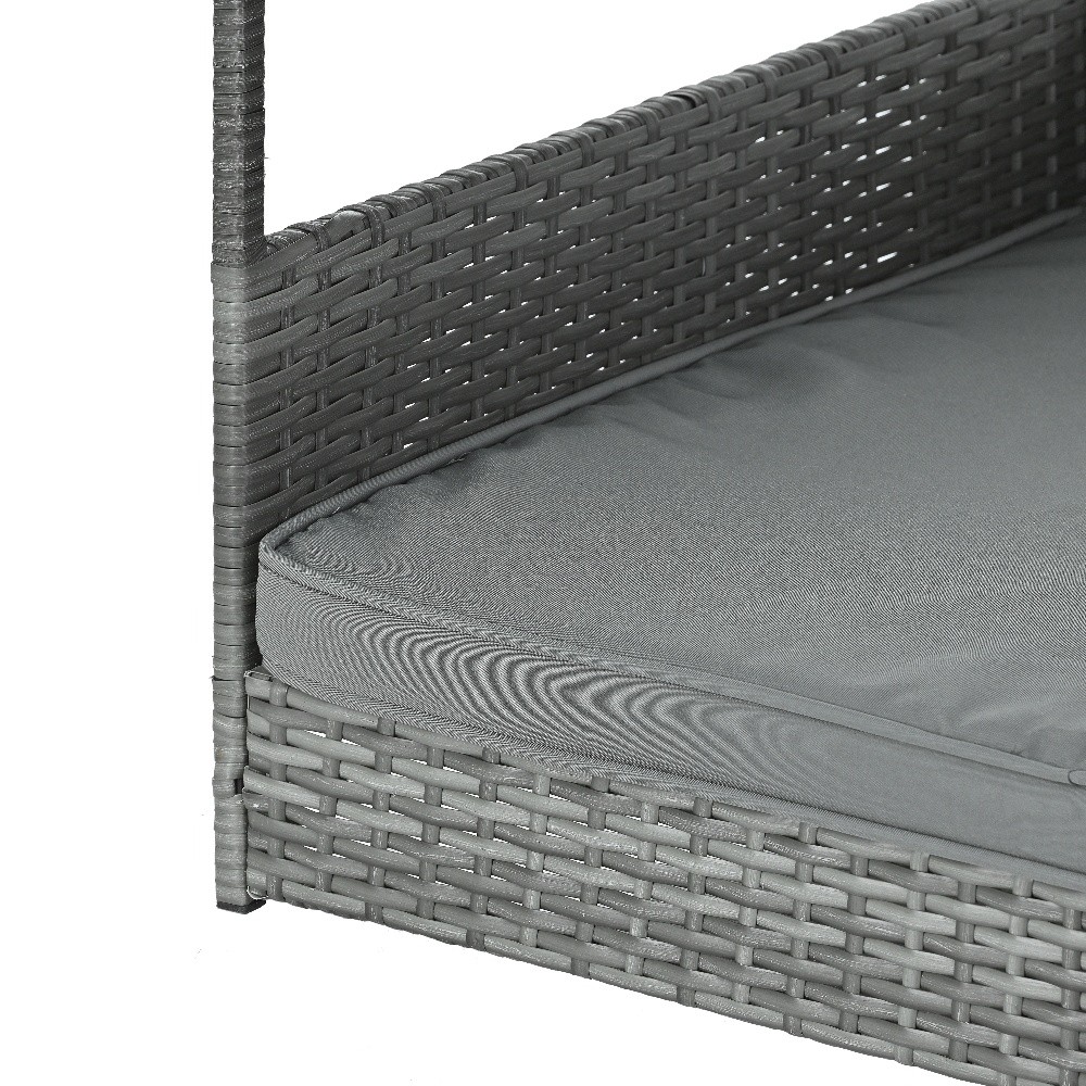 Dark Gray PE Wicker Dog Bed w/Canopy Elevated Patio Pet Indoor Outdoor Furniture