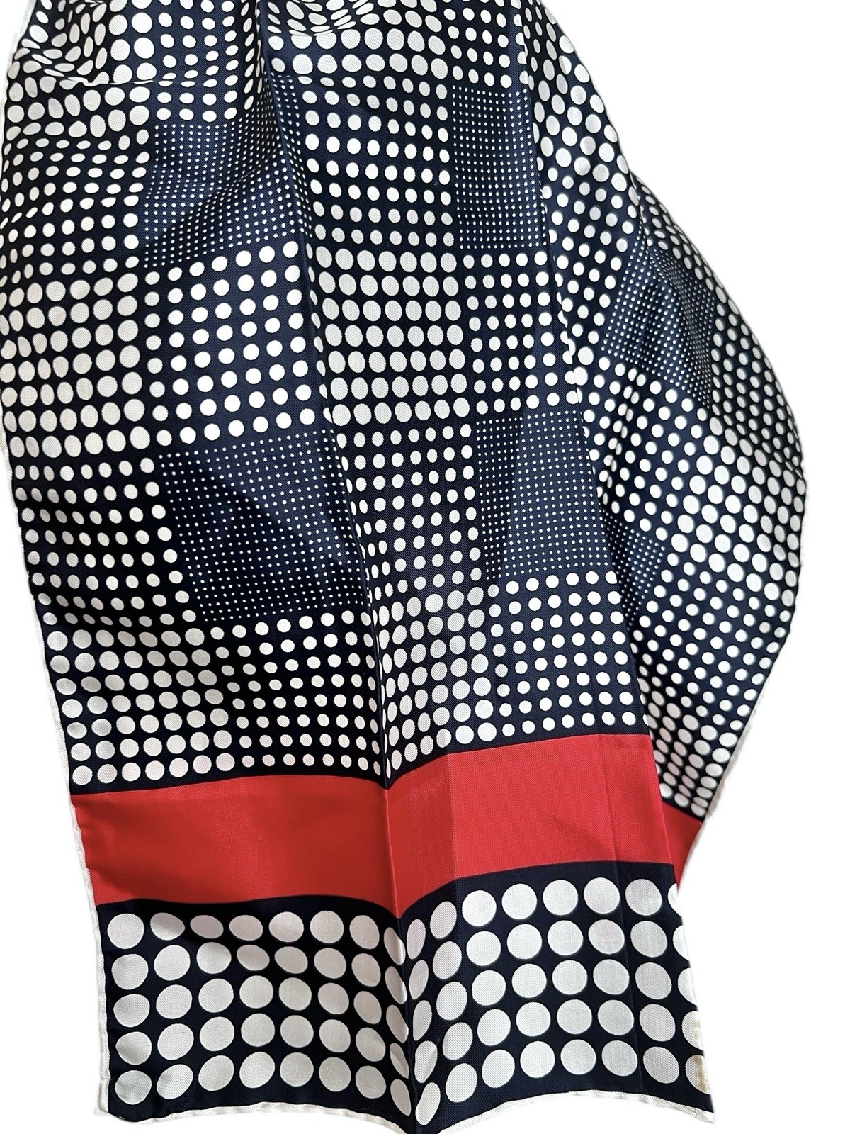как выглядит Vintage Echo Rectangle Scarf Red White Blue Circles Print Japan Silk Blend 46 фото