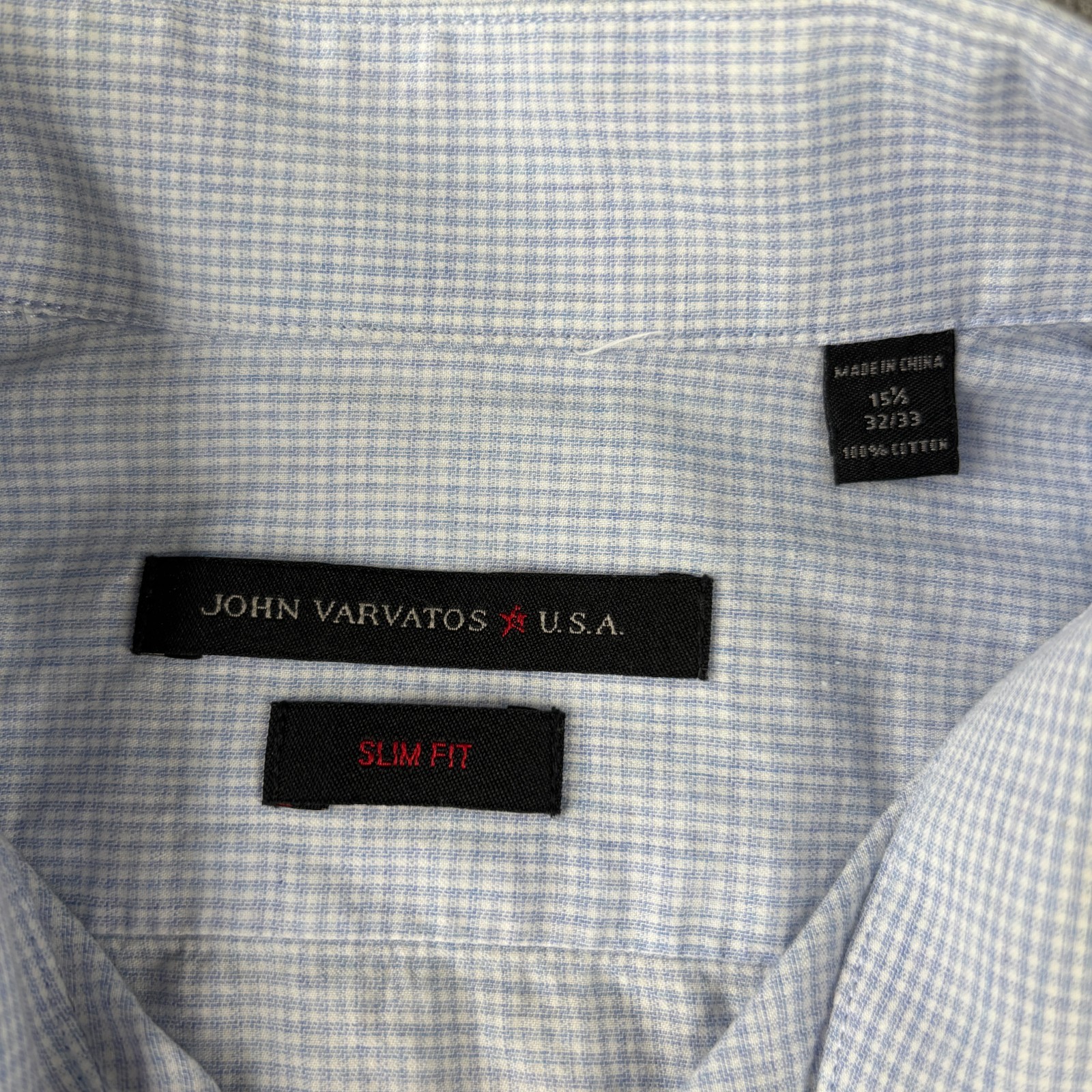John Varvatos Dress Shirt Mens 15.5 32/33 Blue Plaid Slim Cotton Long Sleeve