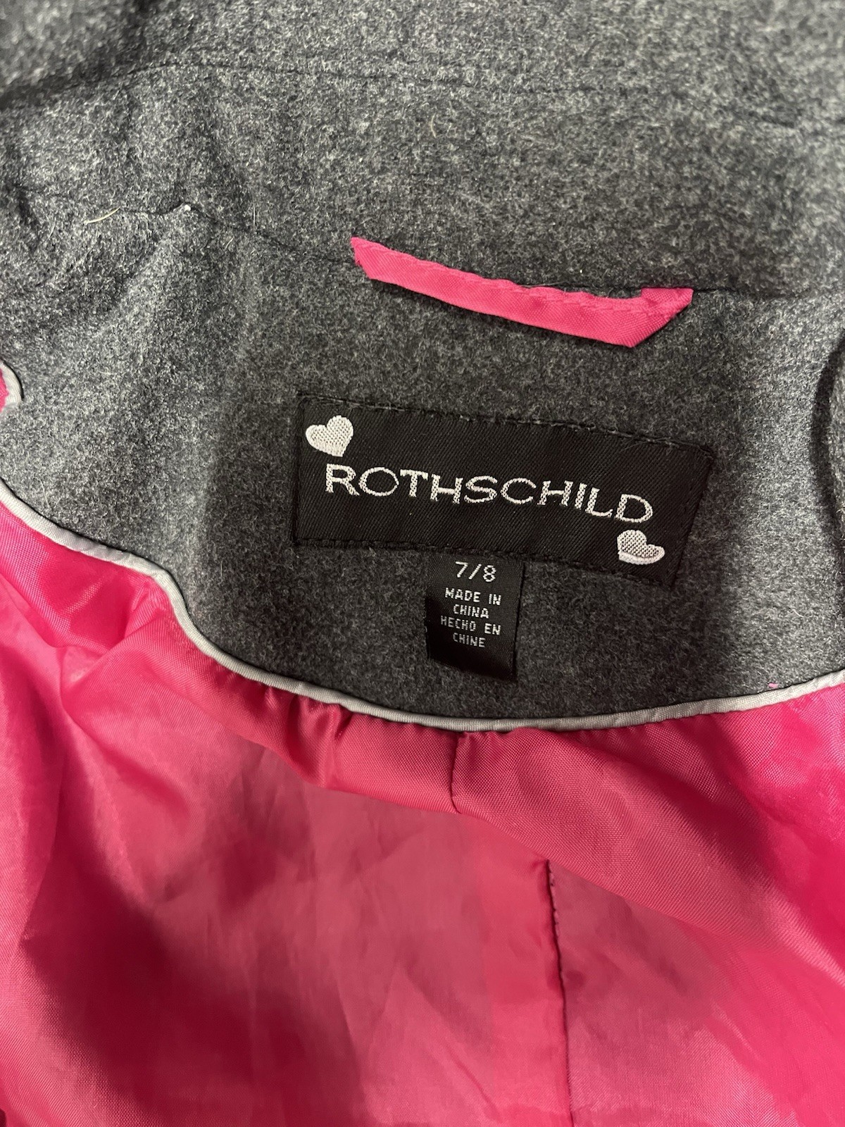 как выглядит Rothschild Pea Coat Girls Size 7/8 Detachable Hood Gray With Pink Lining фото