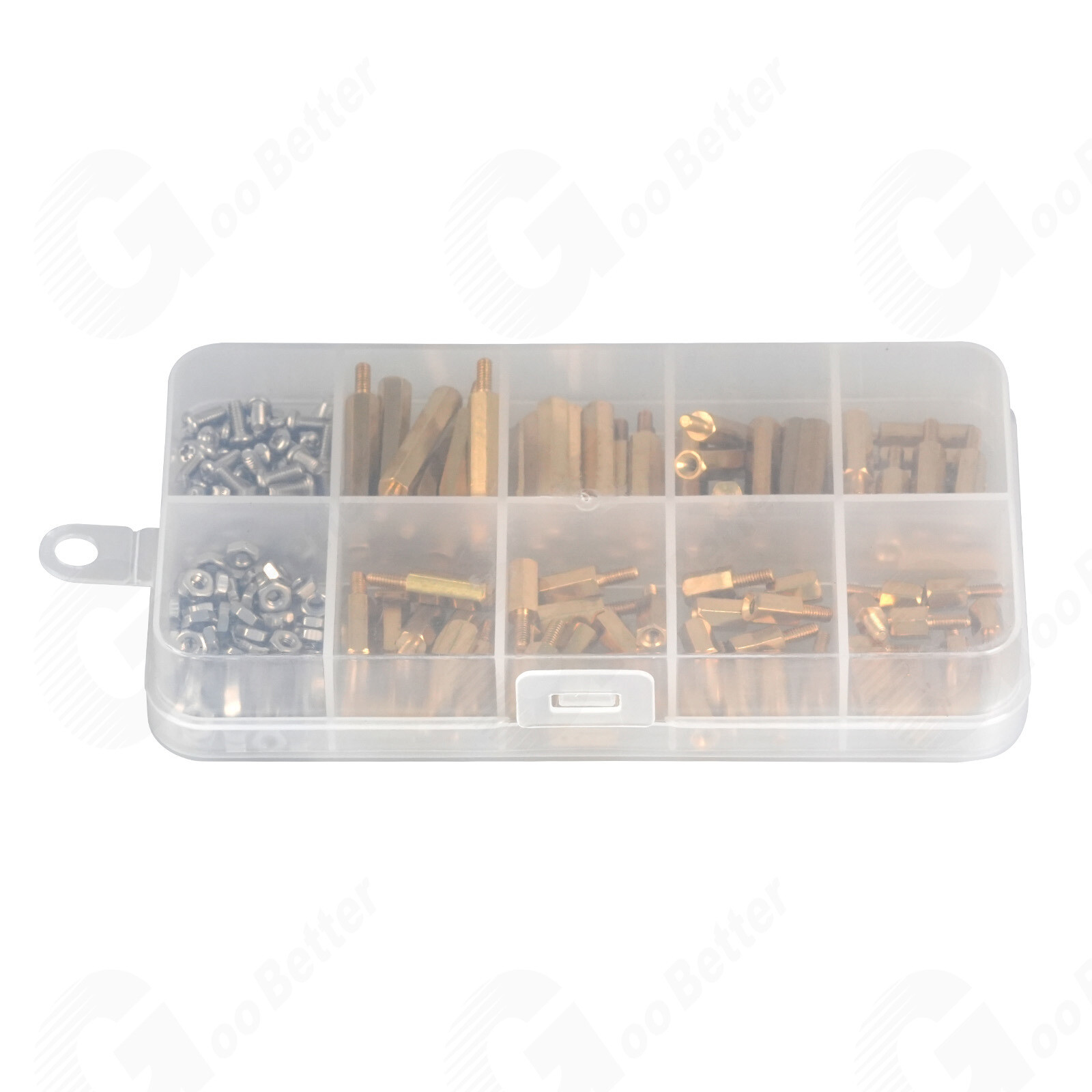 как выглядит 240Pcs M2.5 Male Female Brass Spacer Hex Standoff Screw Nut Assortment Kit PCB фото