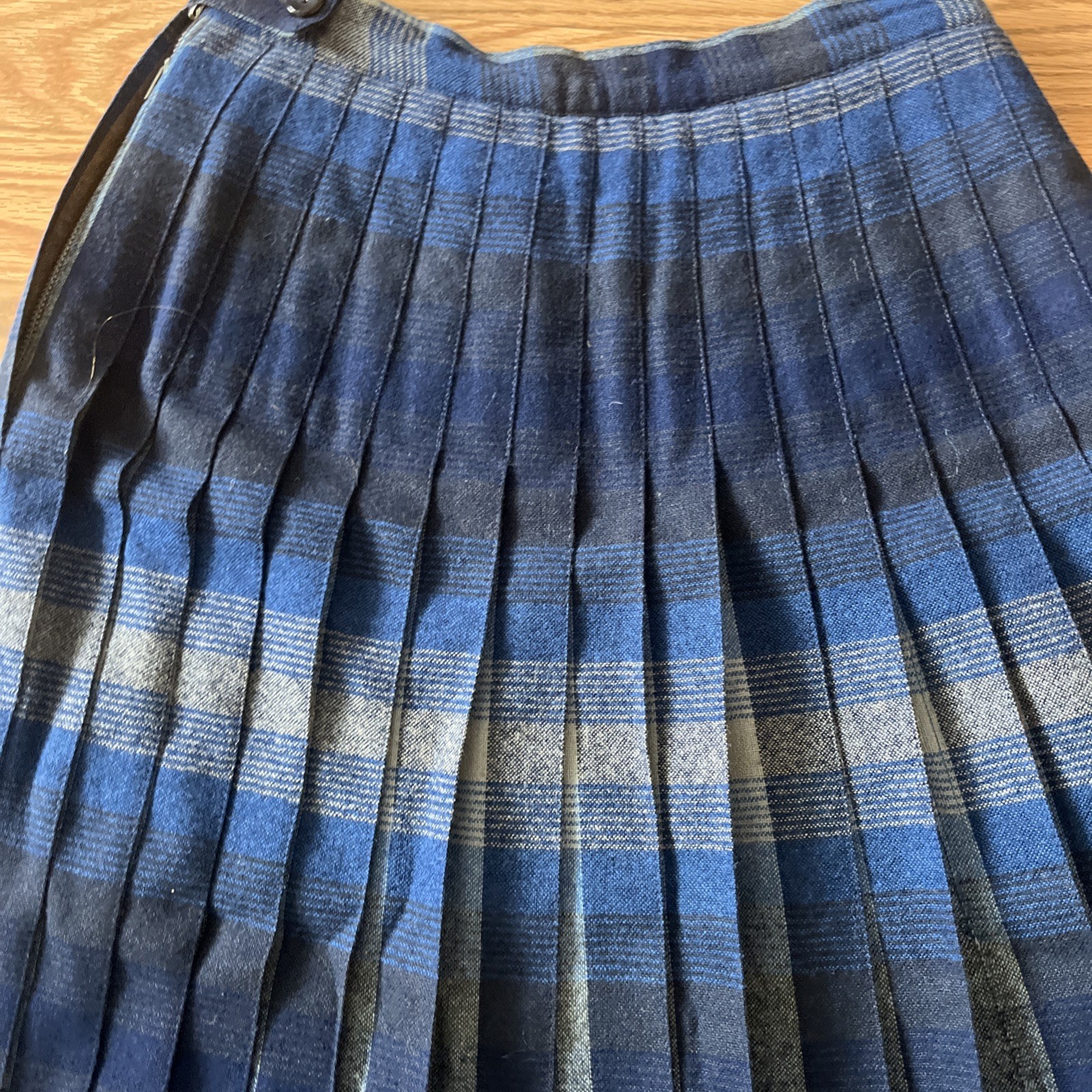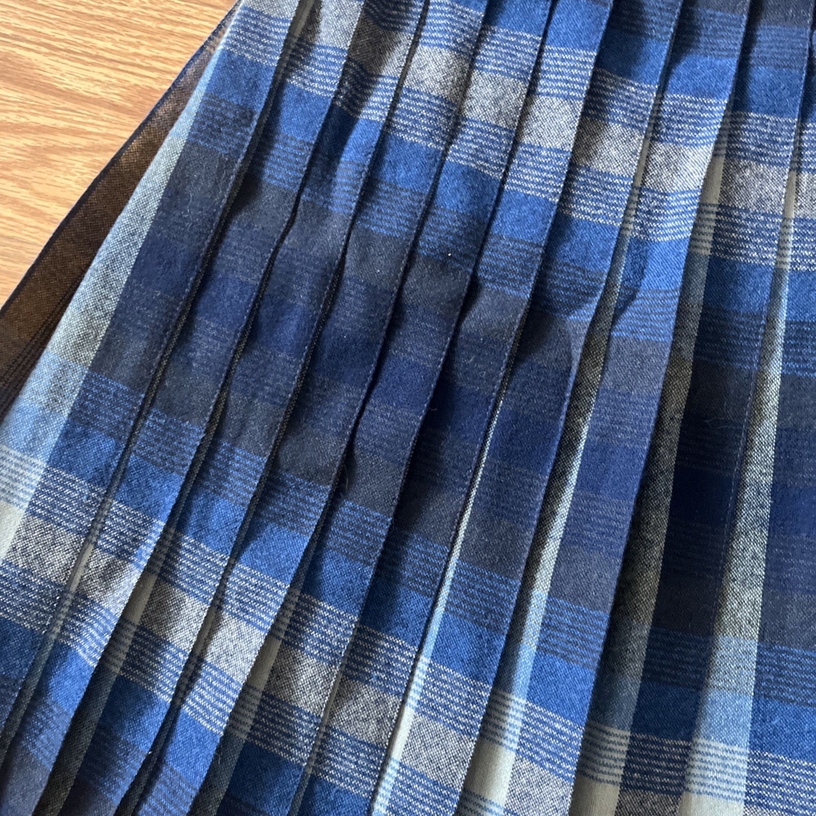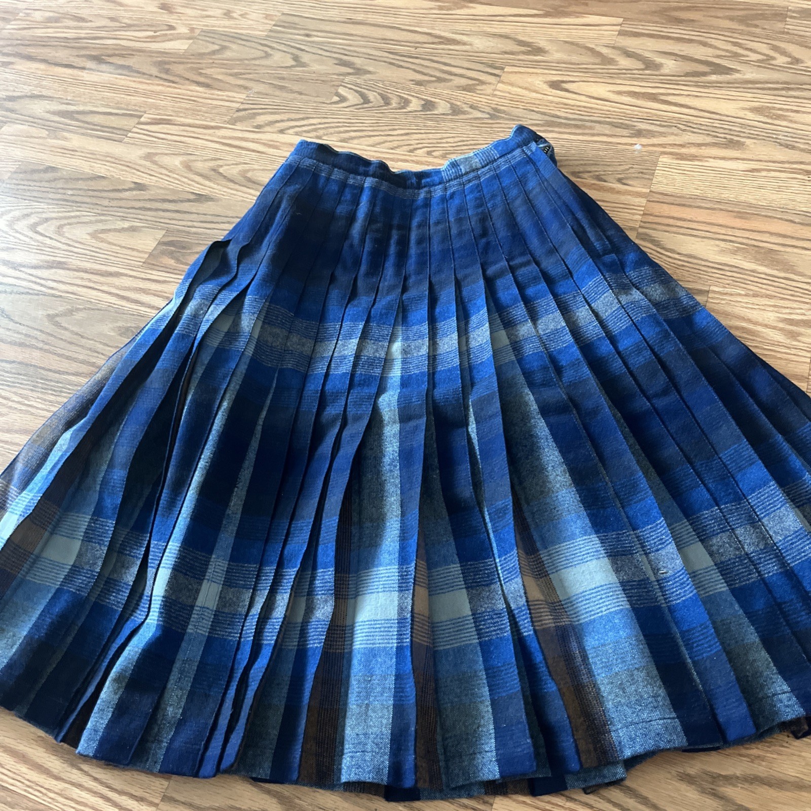 как выглядит Vtg PENDLETON Plaid Midi Pleat A-line Skirt Blue 100 Wool USA Portland фото