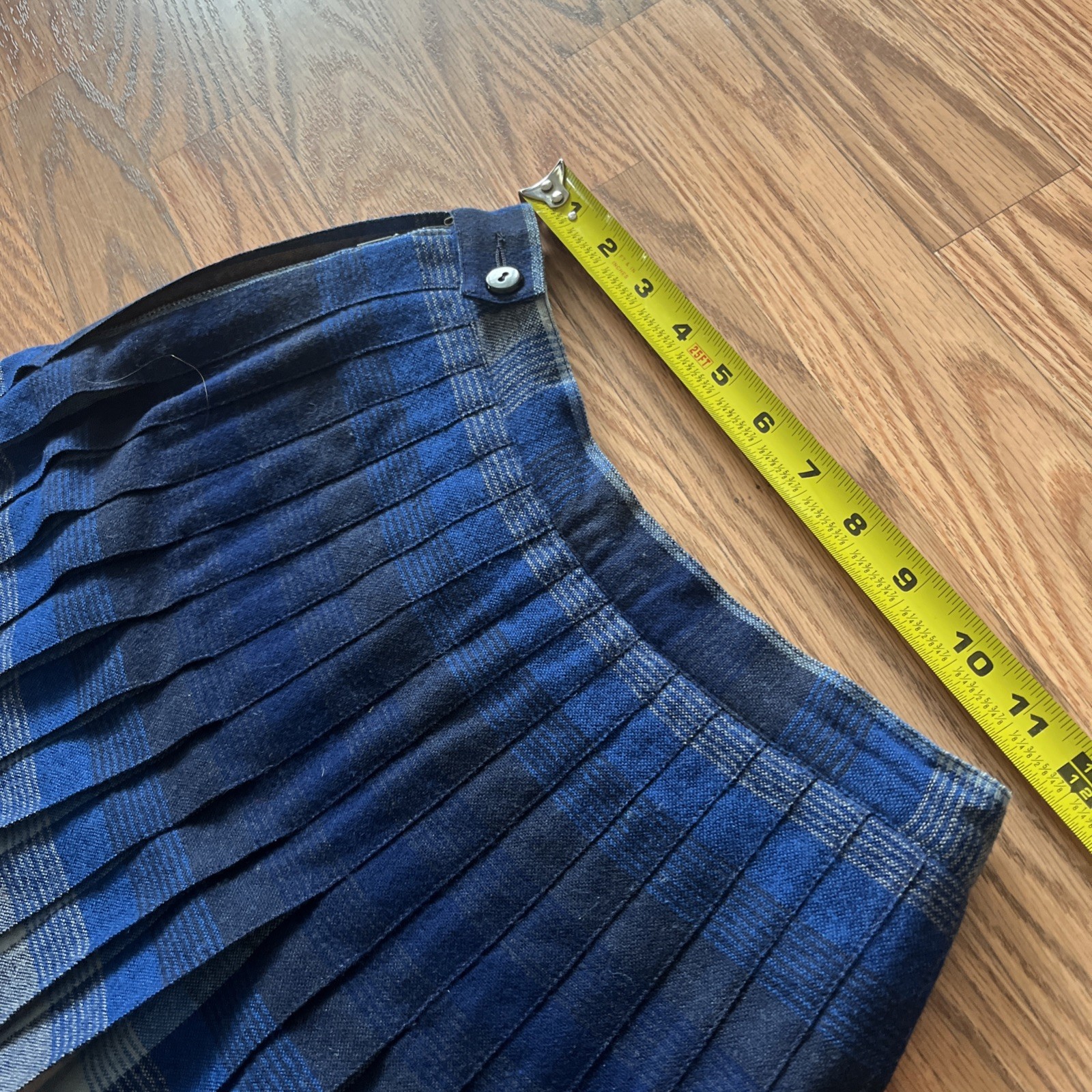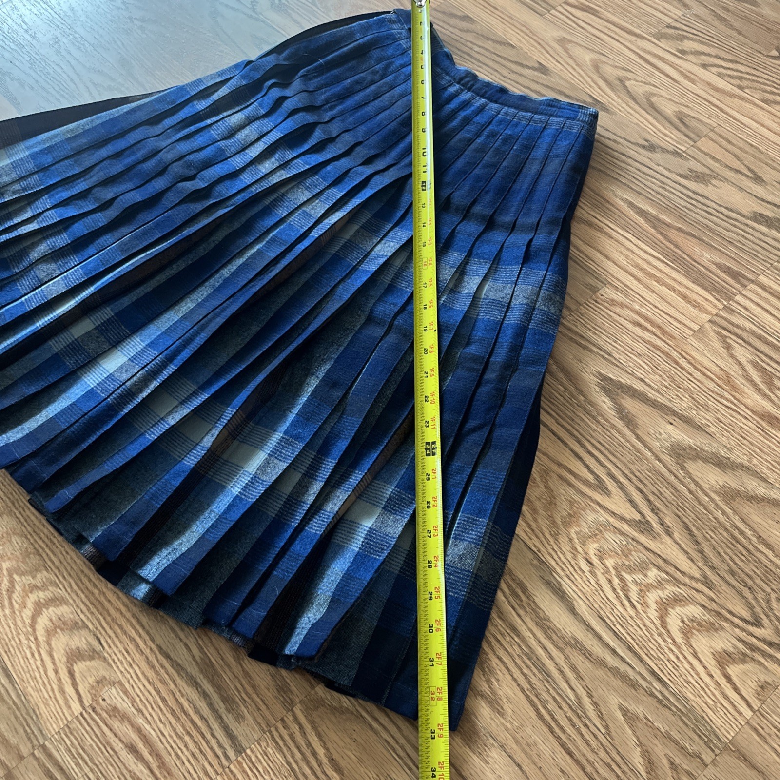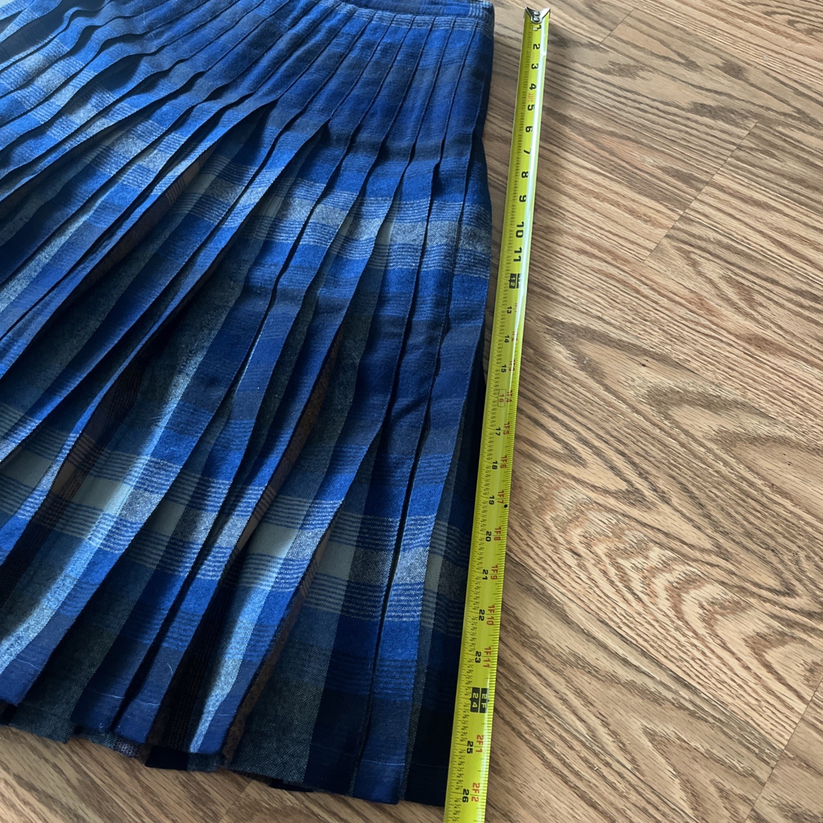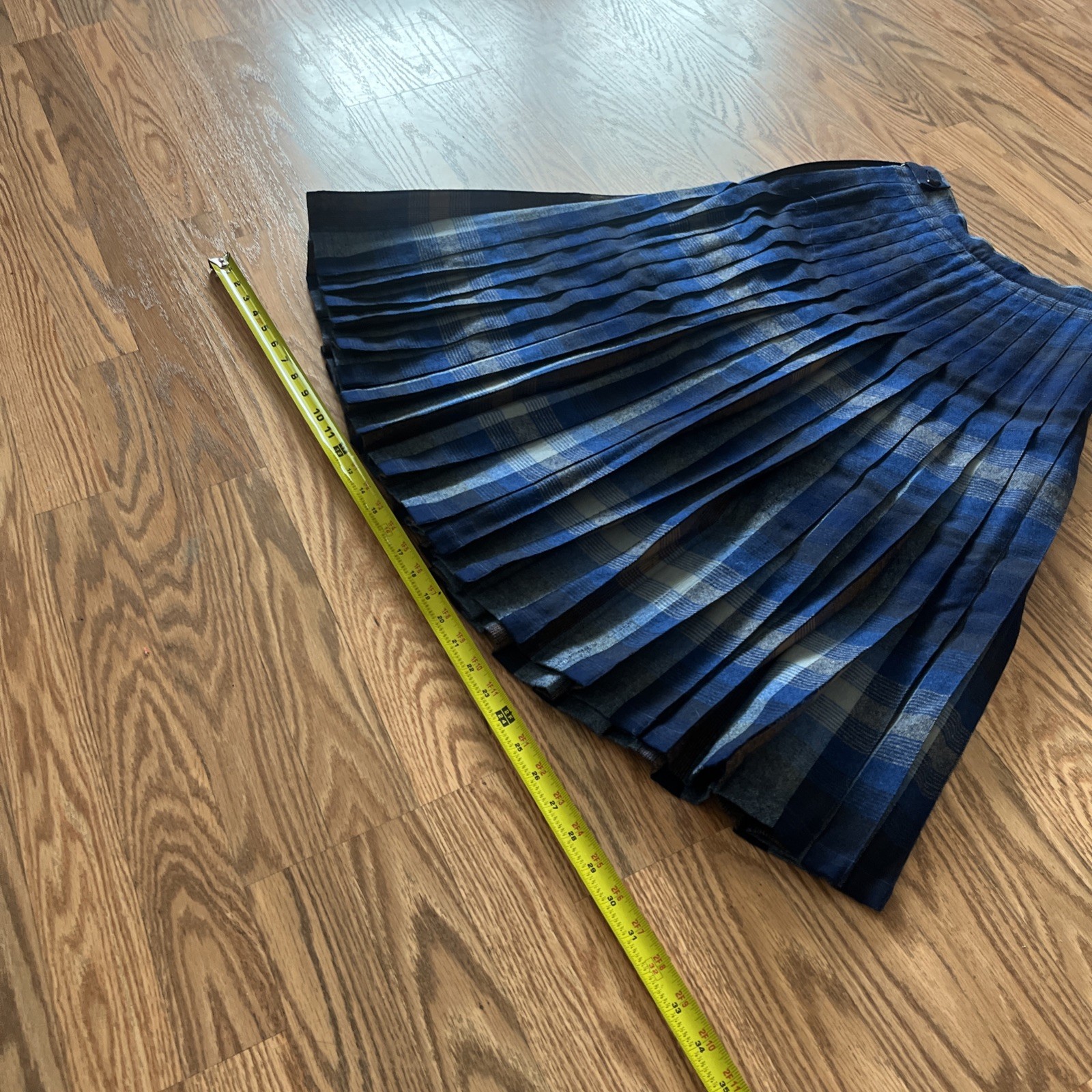 как выглядит Vtg PENDLETON Plaid Midi Pleat A-line Skirt Blue 100 Wool USA Portland фото