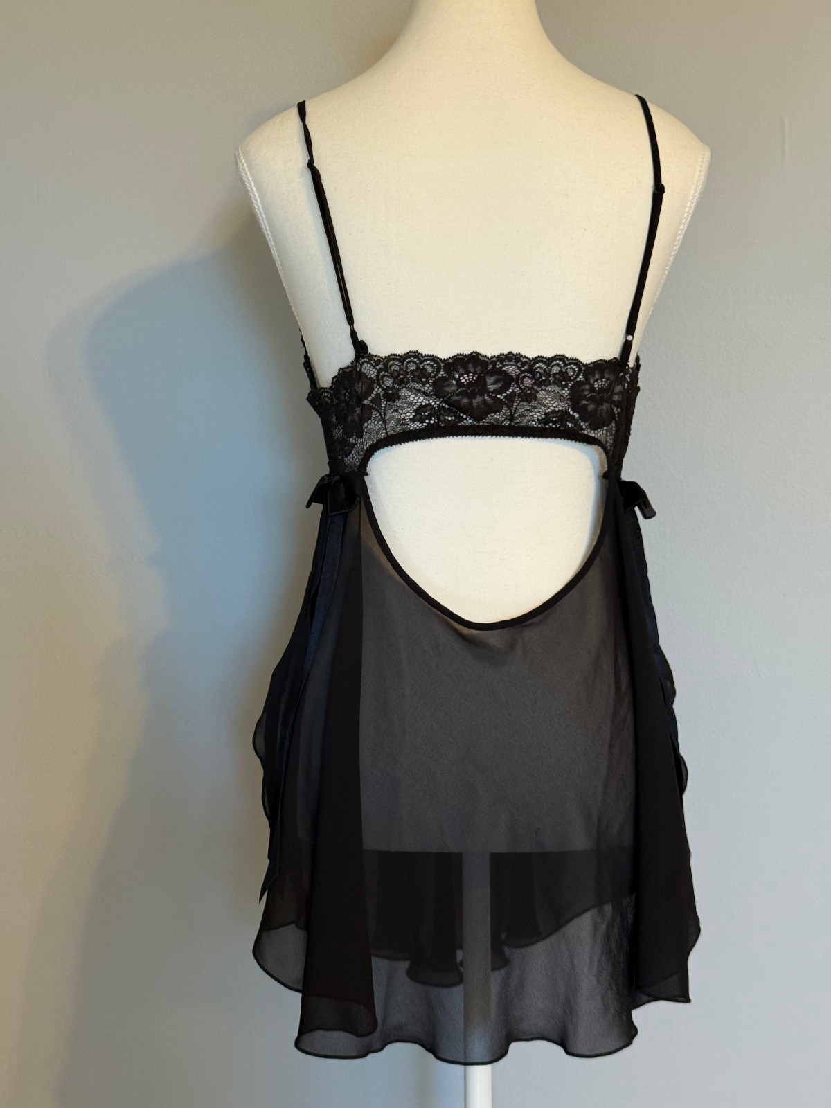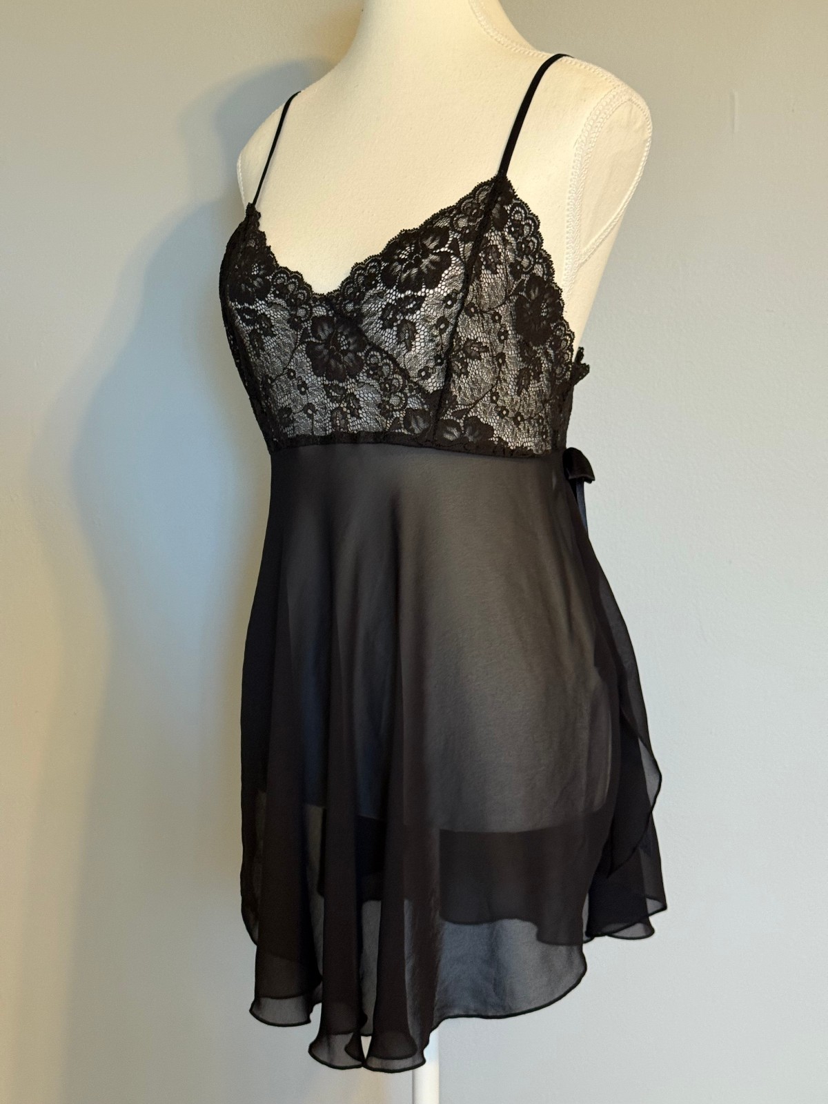 как выглядит VICTORIAS SECRET CHEMISE SIZE:M BLACK PLEATED SLEEP DRESS LACE DETAIL SIDE SLIT фото