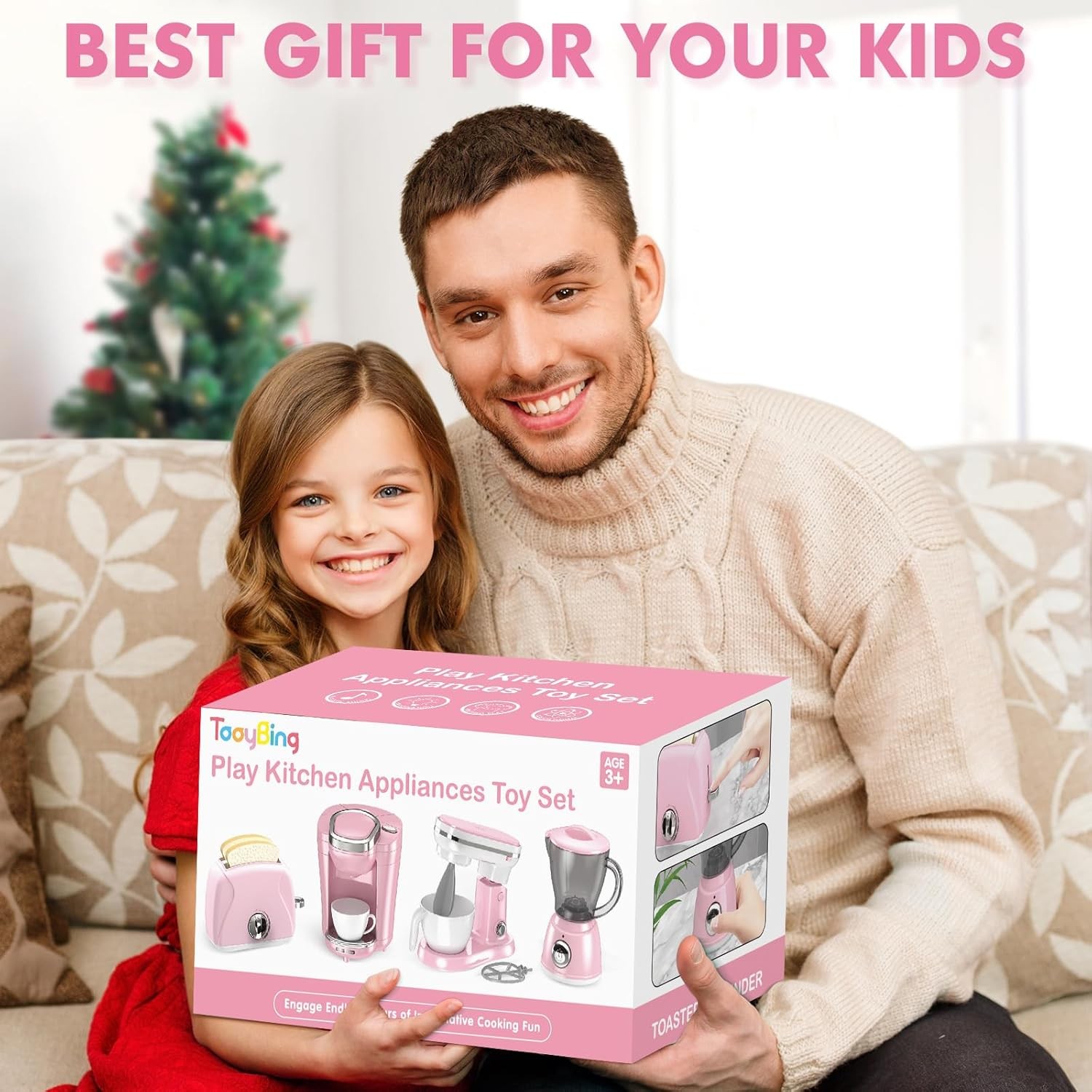 Pretend Kitchen Appliances Set, Coffee Maker, Mixer, Toaster and Blender w Sound