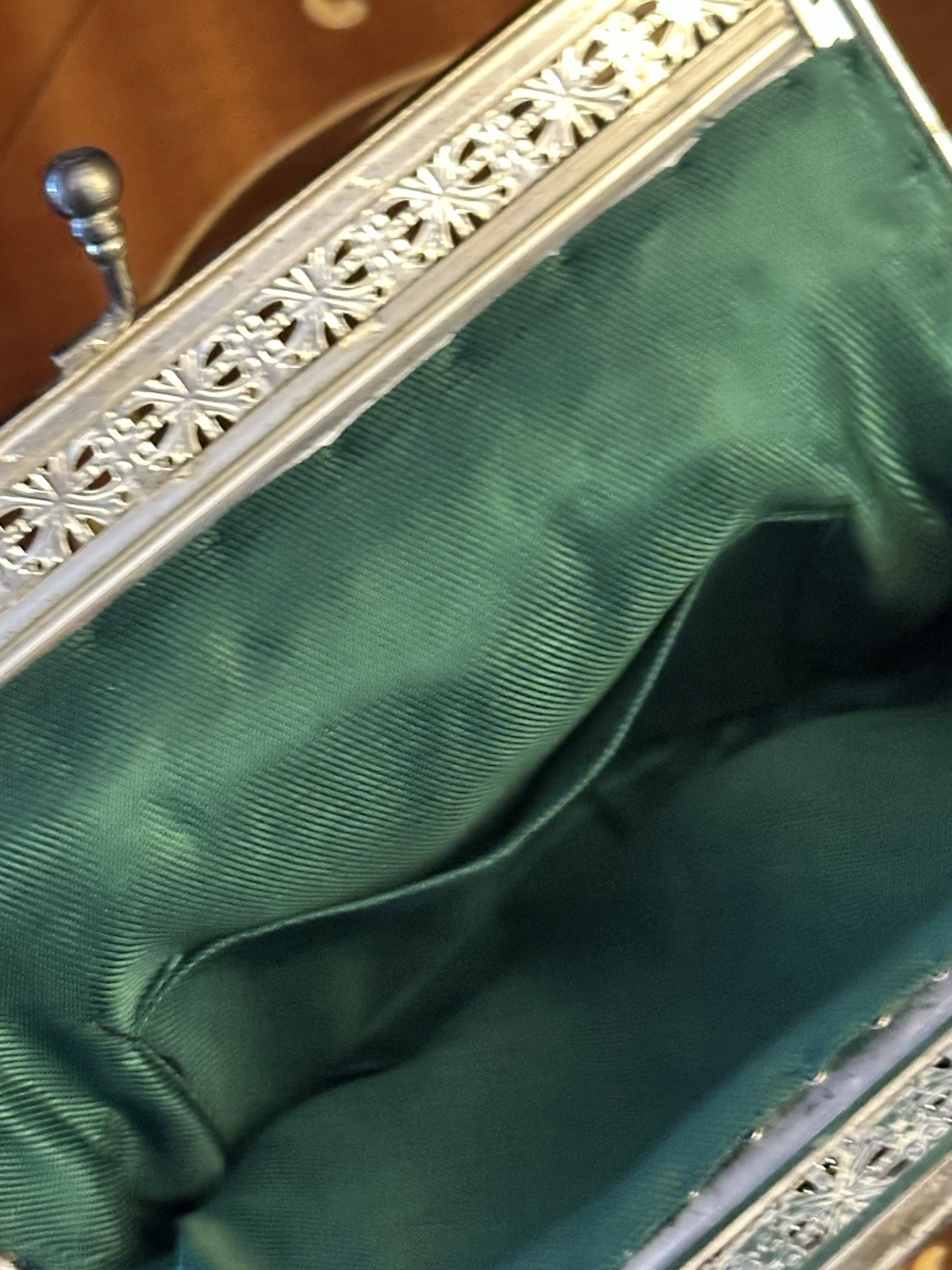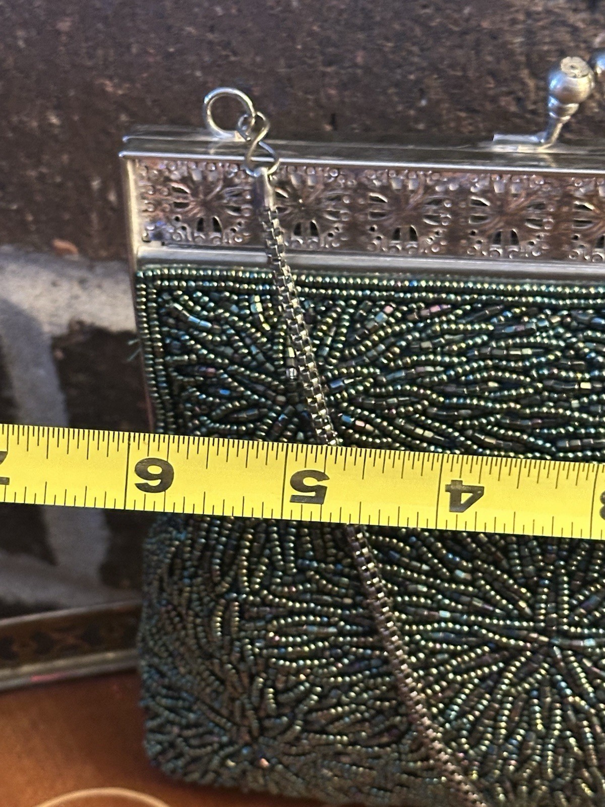 как выглядит Vtg Green Starburst Beaded Clutch Evening Bag  Silver-Tone Frame Chain Strap фото
