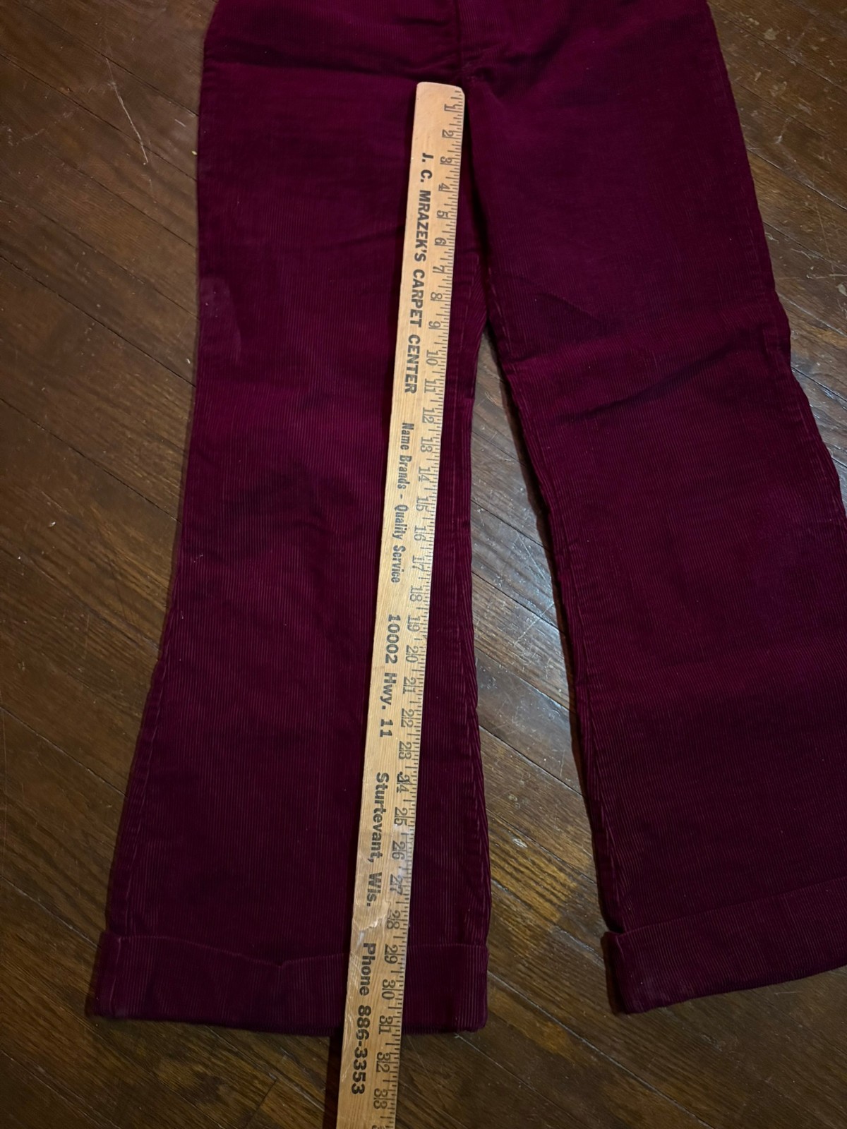Vtg 70s T T Sears Mens Burgundy Corduroy Hippie Pants Flared Bell Bottoms 34 M