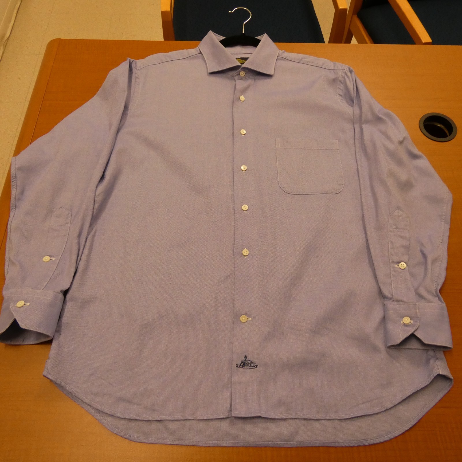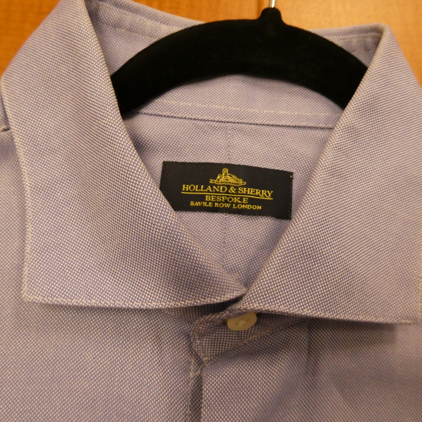 как выглядит Holland Sherry BESPOKE Savile Row London Dress Shirt Blue Pinpoint L Custom фото