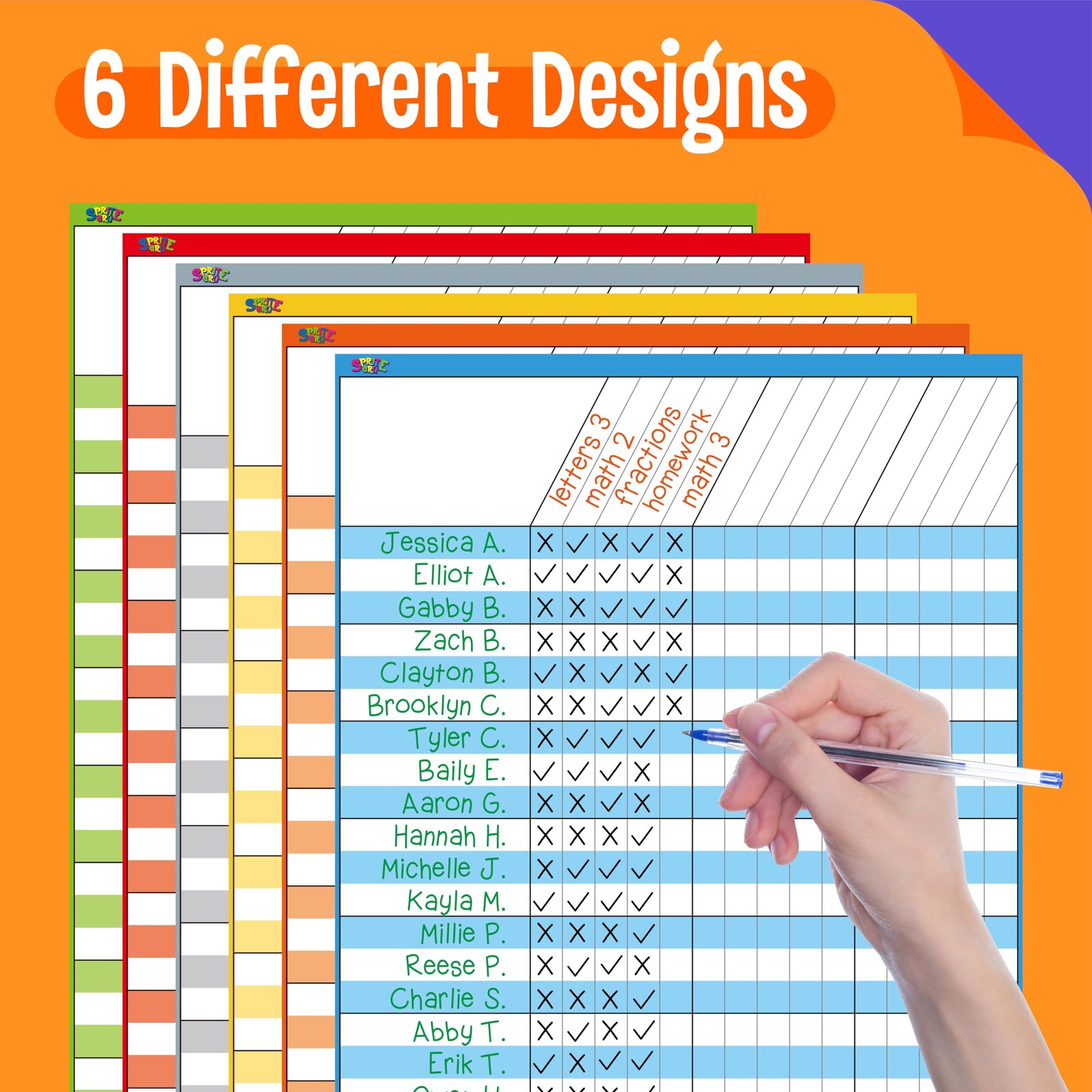 6 Pack Dry Erase Incentive Chart, 6 Multi-Color Tracking Chart for 11 x 17