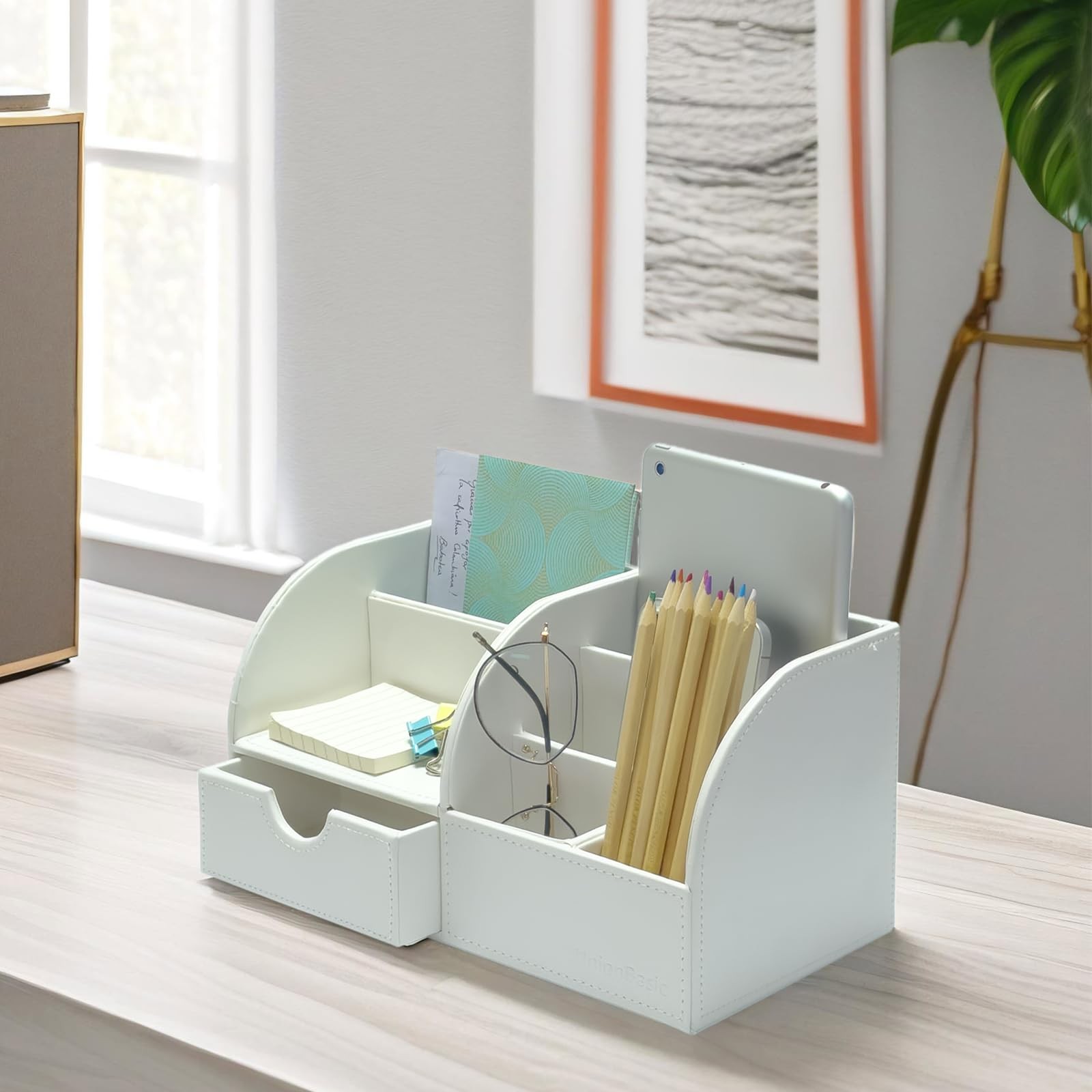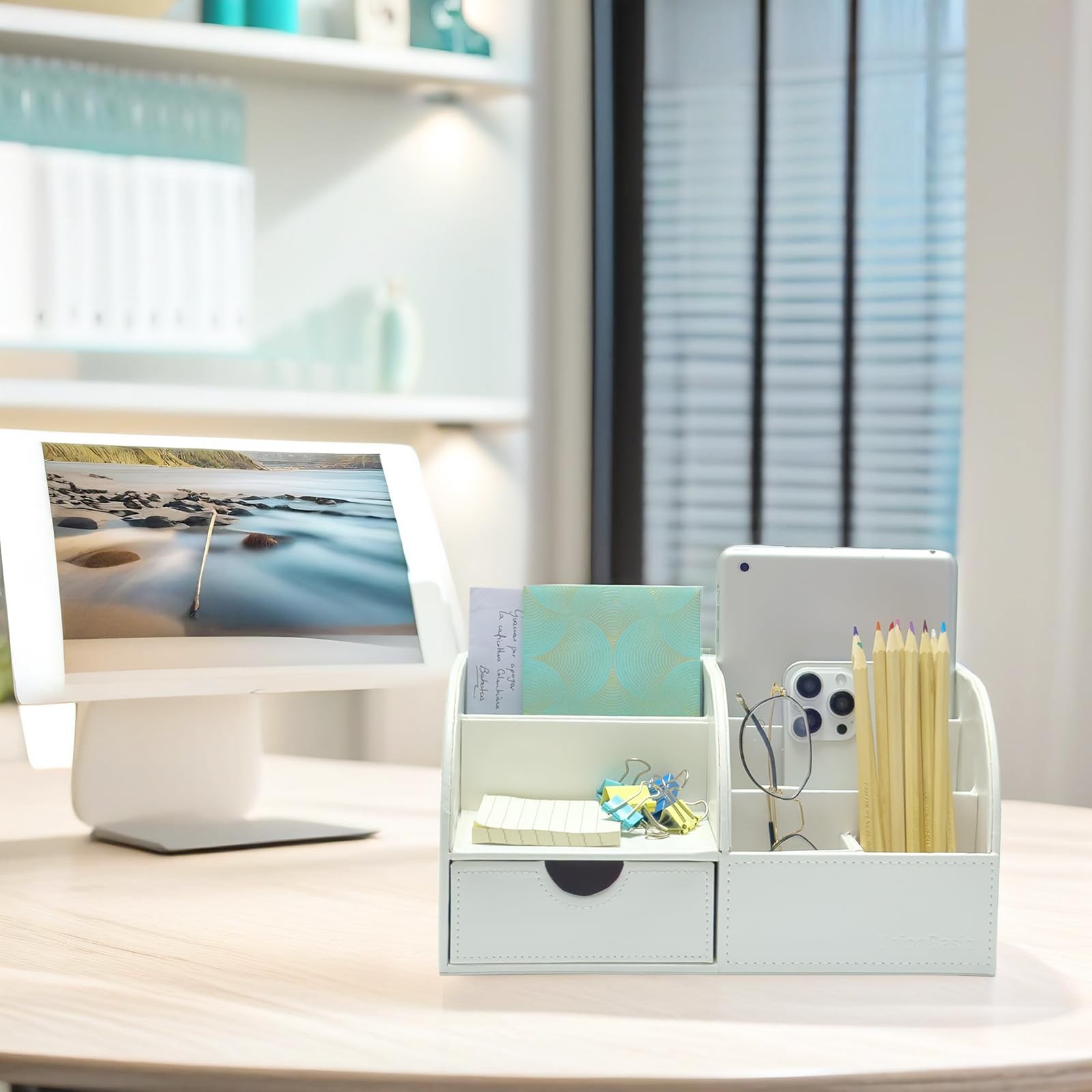 Office Desk Organizer - Multifunctional PU Leather Desktop Storage Box - Busi...