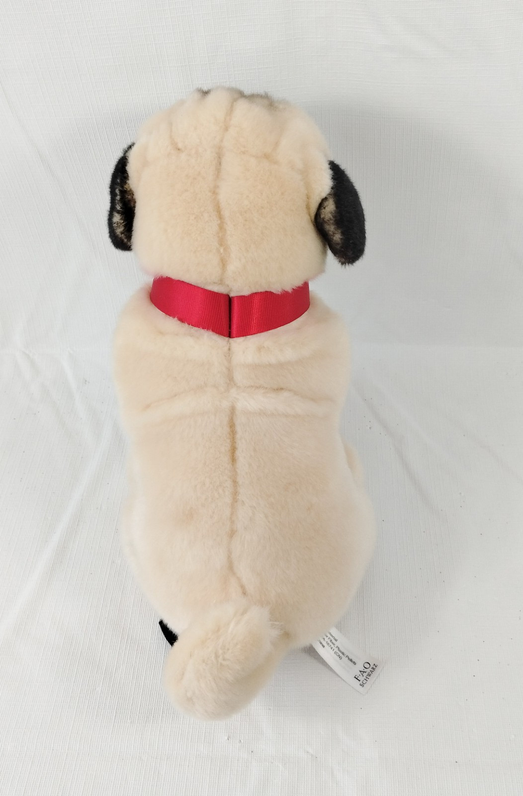 FAO Schwarz Pug Puppy Dog Plush Tan Red Collar Realistic 12