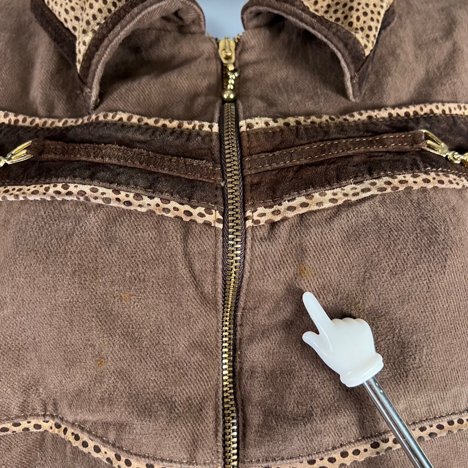 как выглядит Y2K Cache Women Brown Animal Print Collar Zip Up Jacket Cheetah Detail Large фото