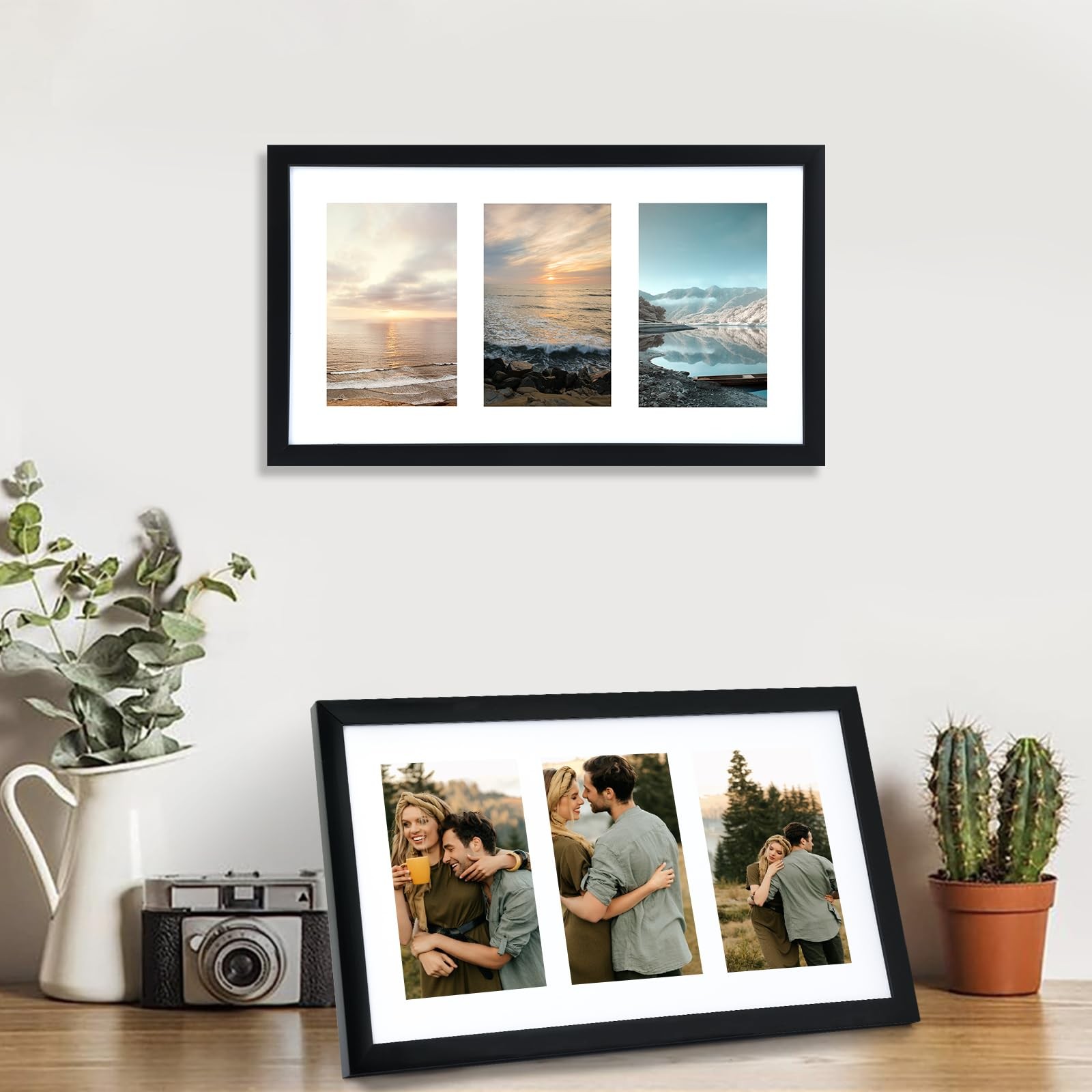 8x14 Collage Picture Frame with Three Openings for Displaying 4x6 Pictures, 4...