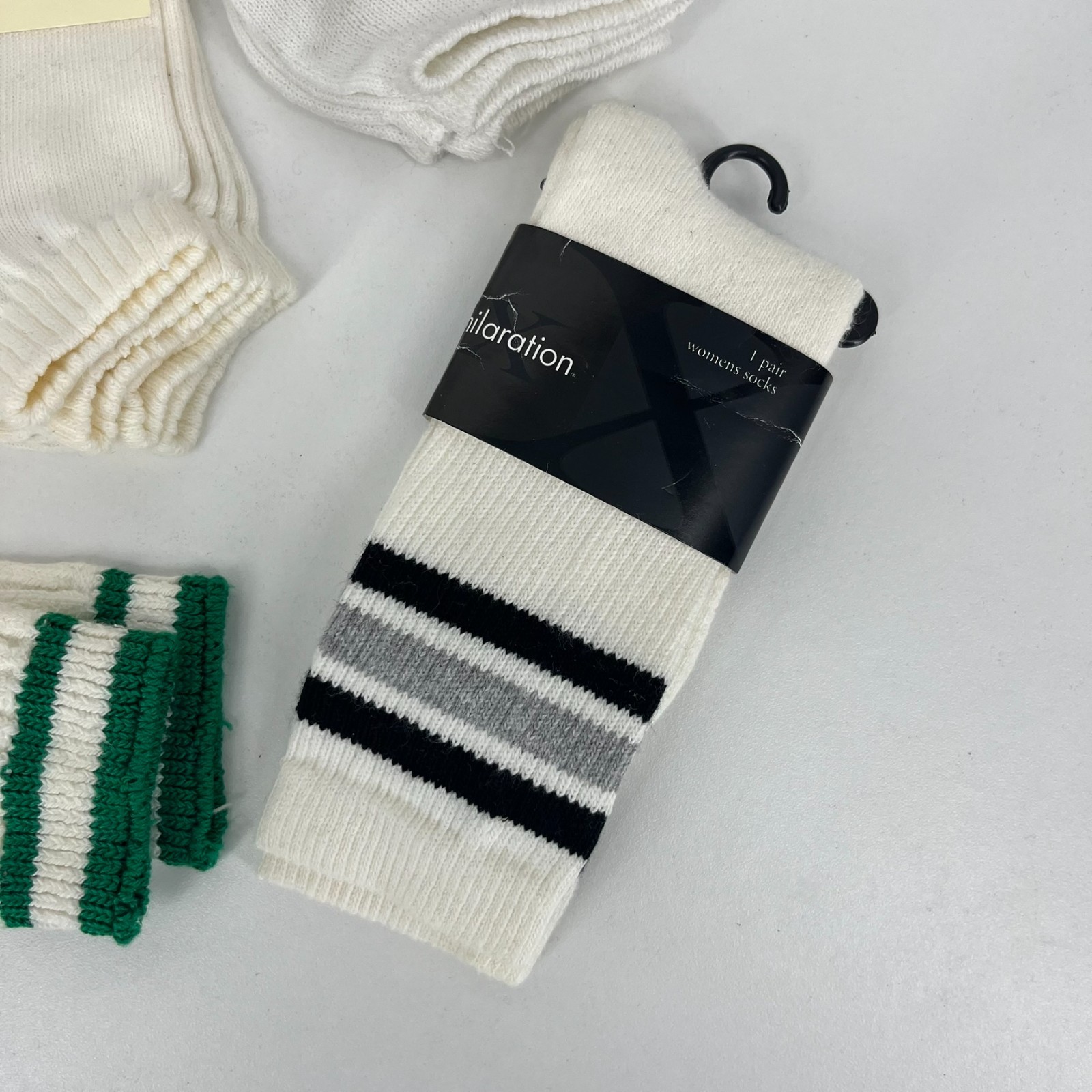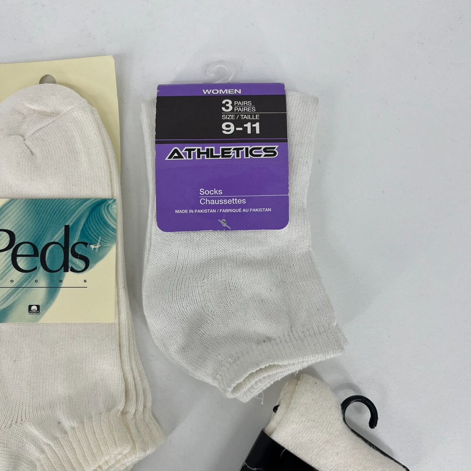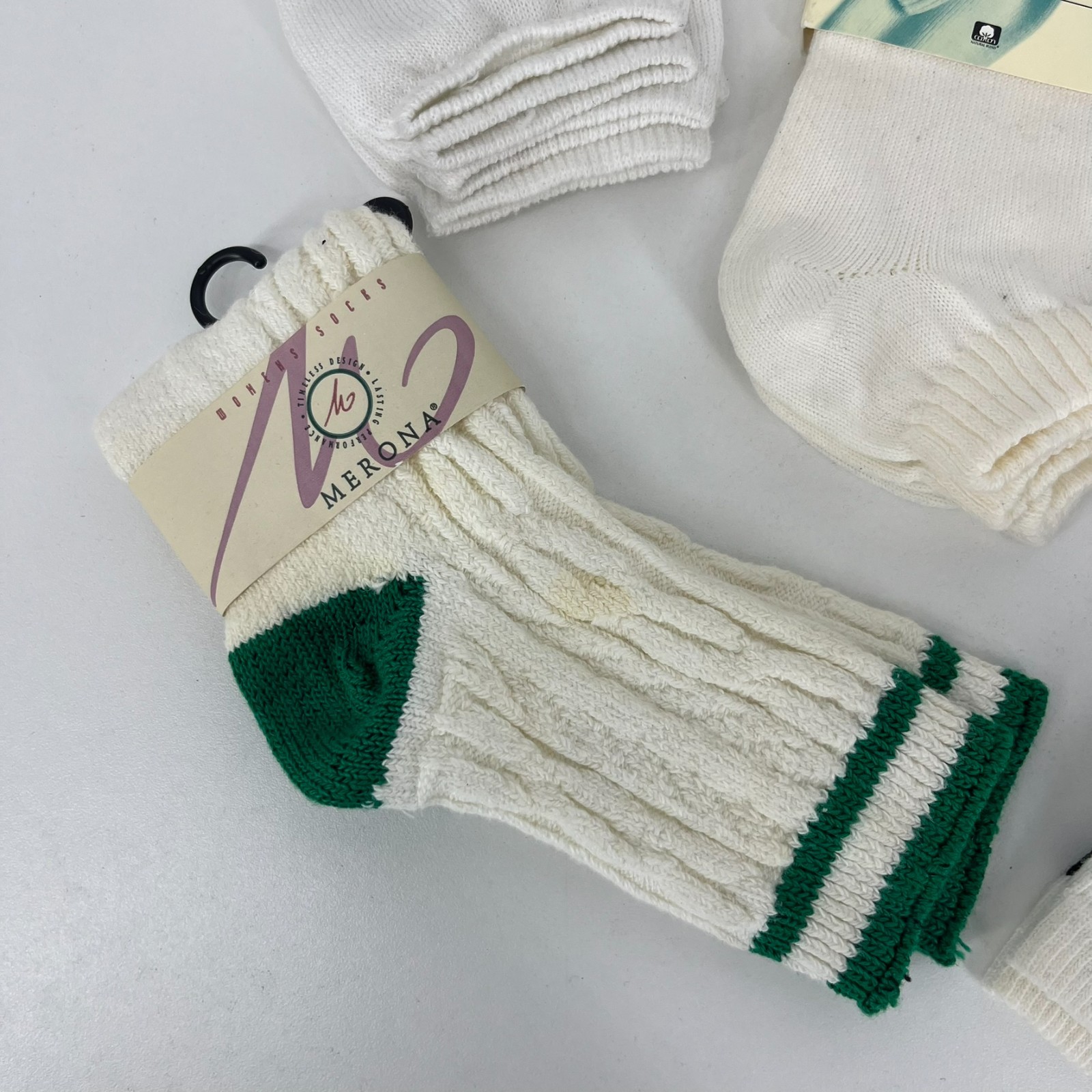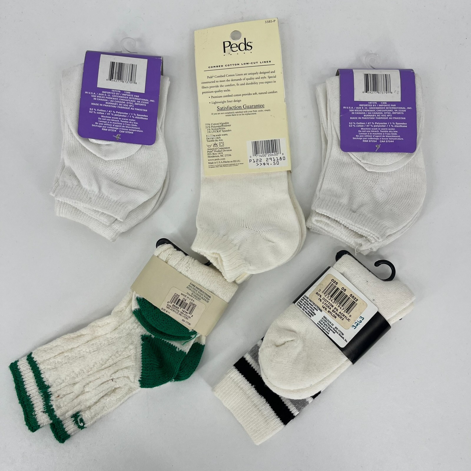 Lot of 5 Vintage 90s Socks Mixed Brands Styles Women's One Size White New NWT