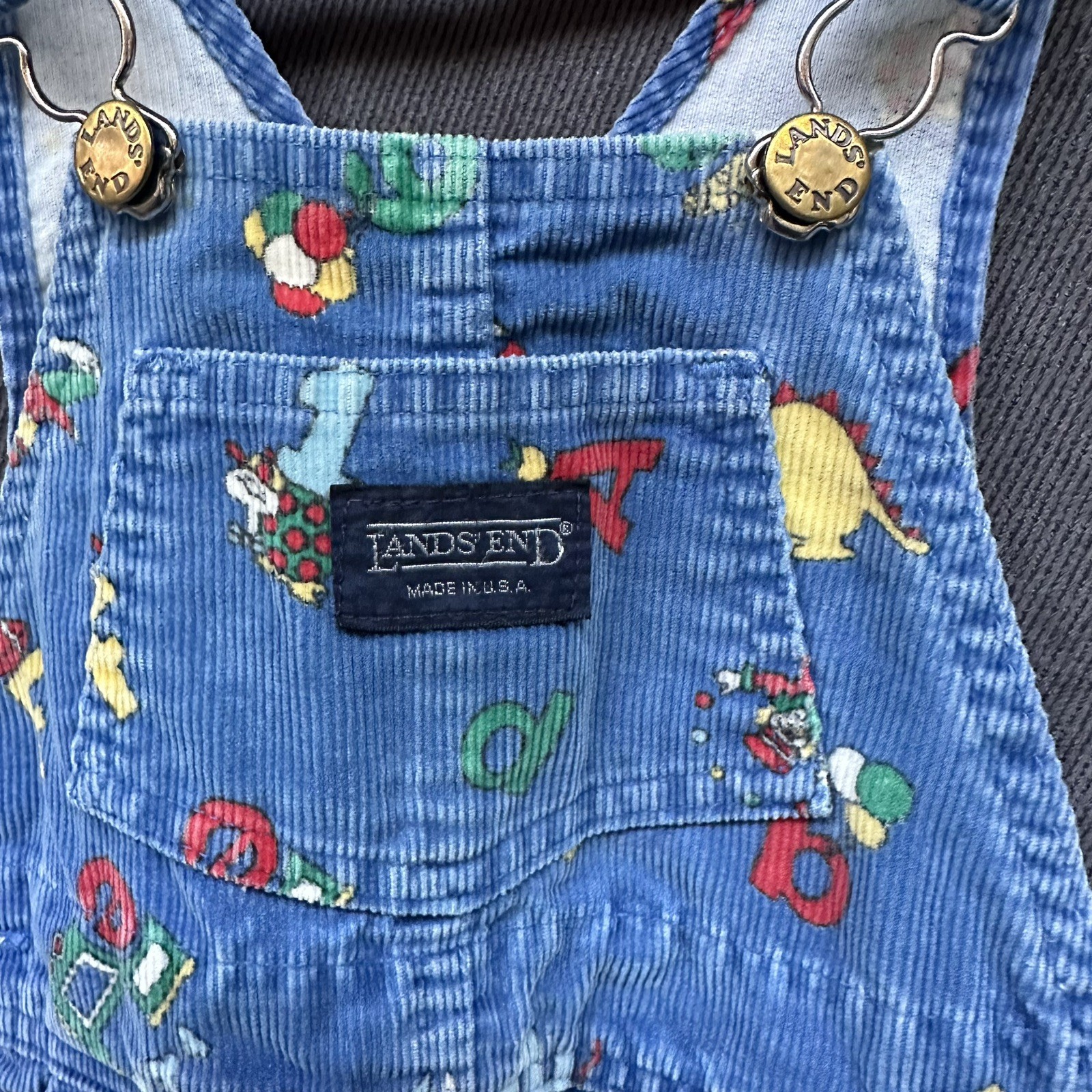 Vtg Corduroy Alphabet Overalls Letters Lands End 3T Kids Boys