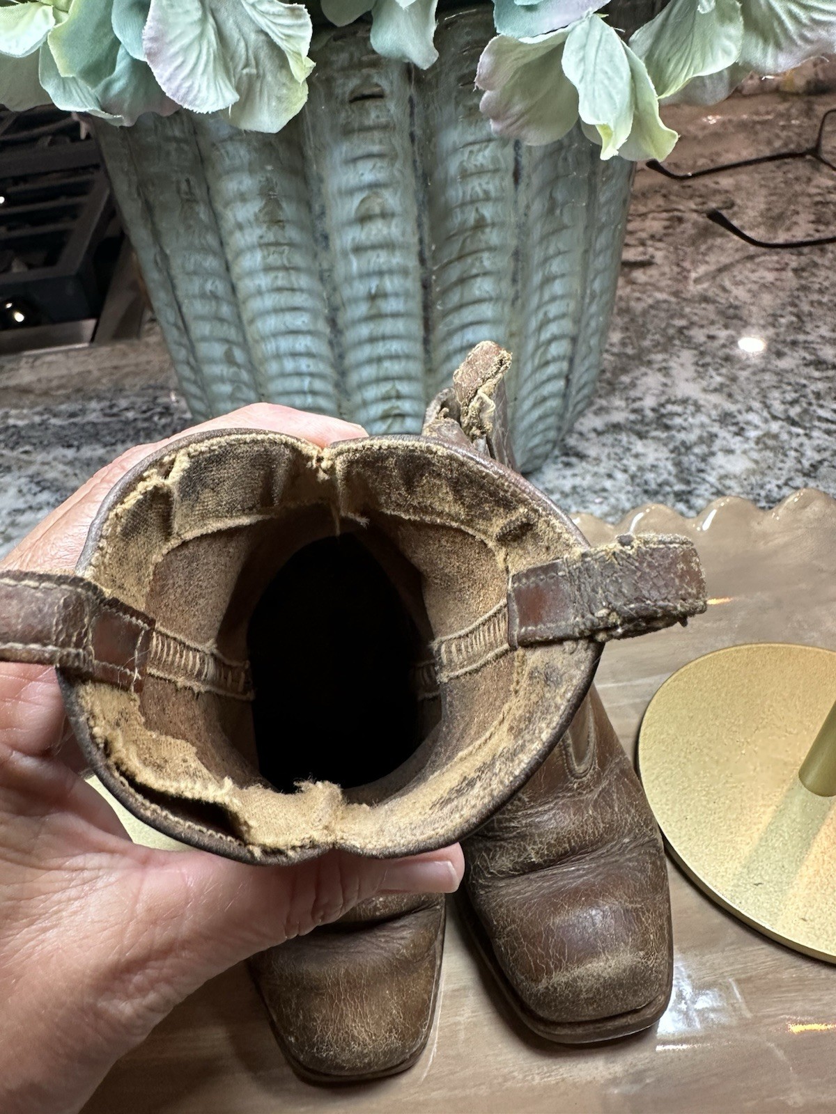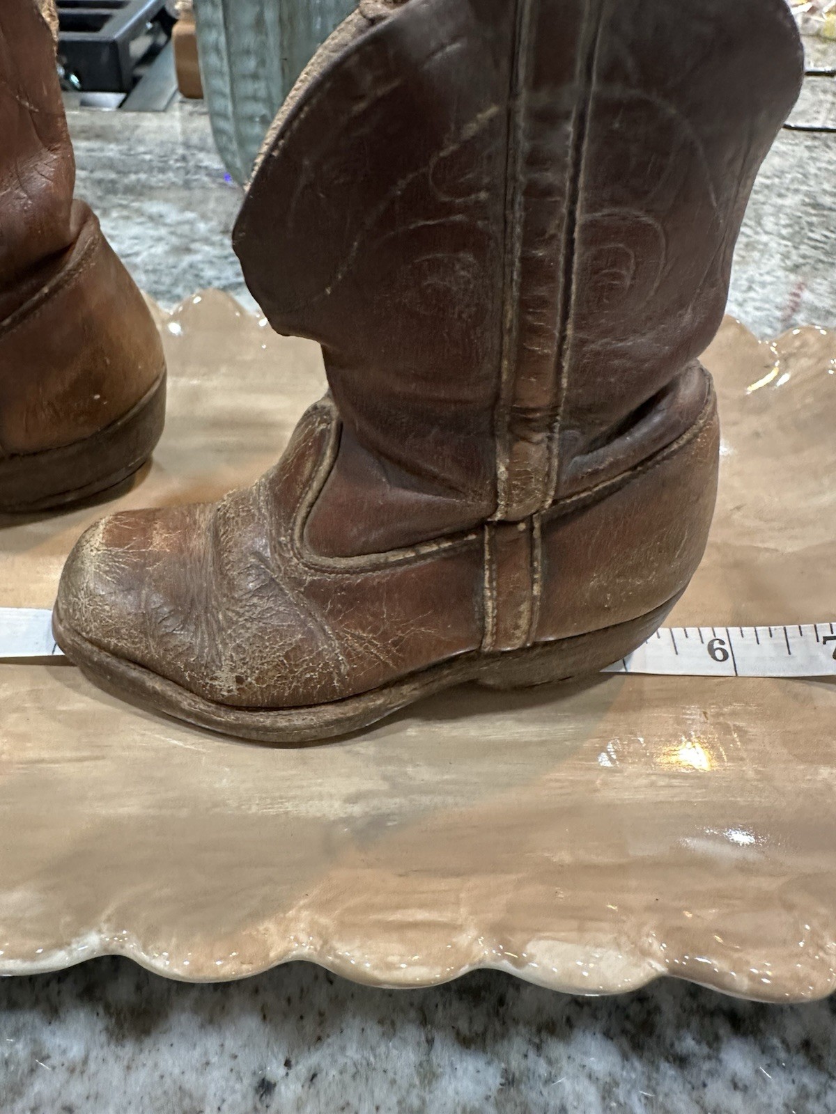 как выглядит Vintage Childrens Brown Leather Western Cowboy Boots фото