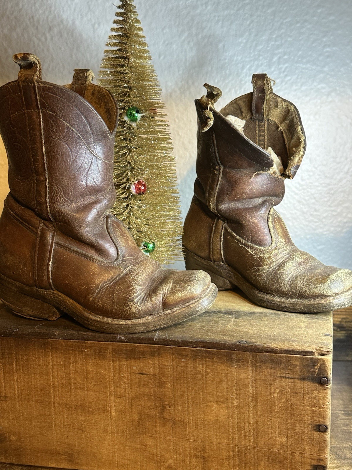 Vintage Children's Brown Leather Western Cowboy Boots