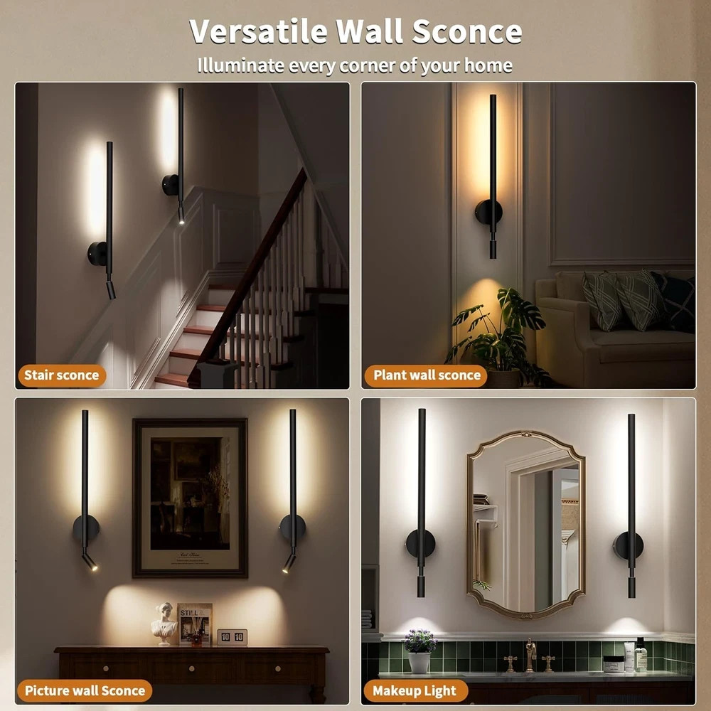 Battery Operated Wall Sconces Set of 2 with Reading Spotlights, Rechargeable LED