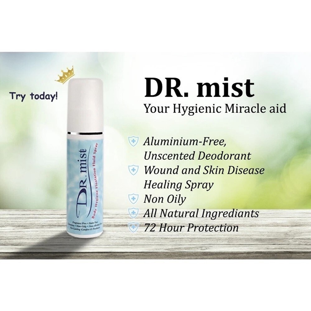 3x 75ml Dr Mist Deodorant Spray Aluminum Free Removes Underarm Body Odor