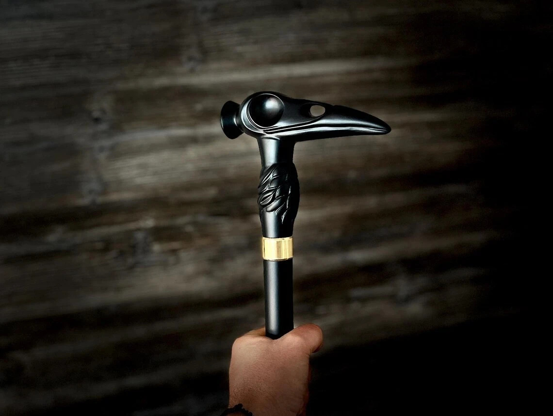 Hand carved raven wooden walking stick for men women walking cane best gift H8
