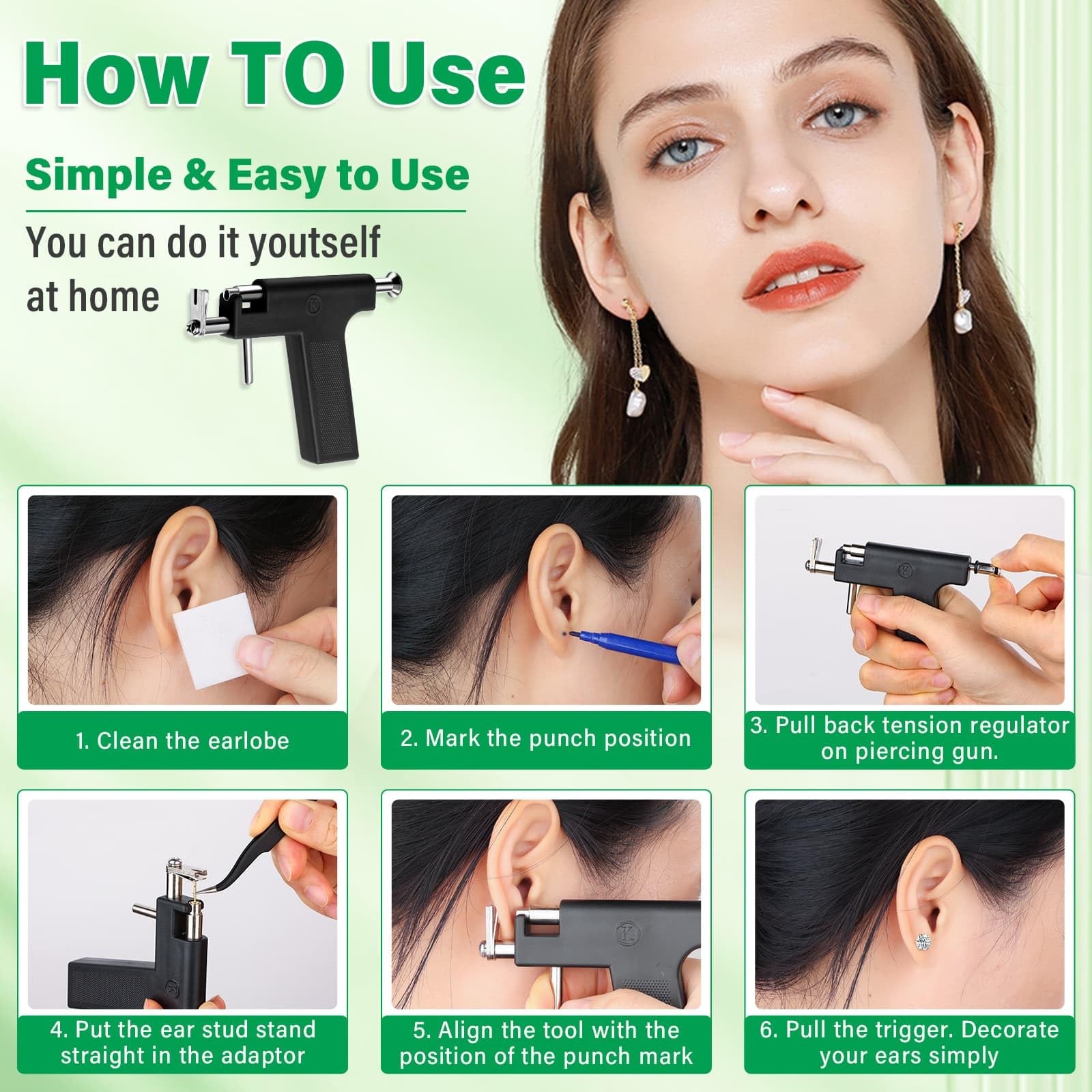 Reusable Ear Piercing Gun Kit, Professional Varity Sizes, Black