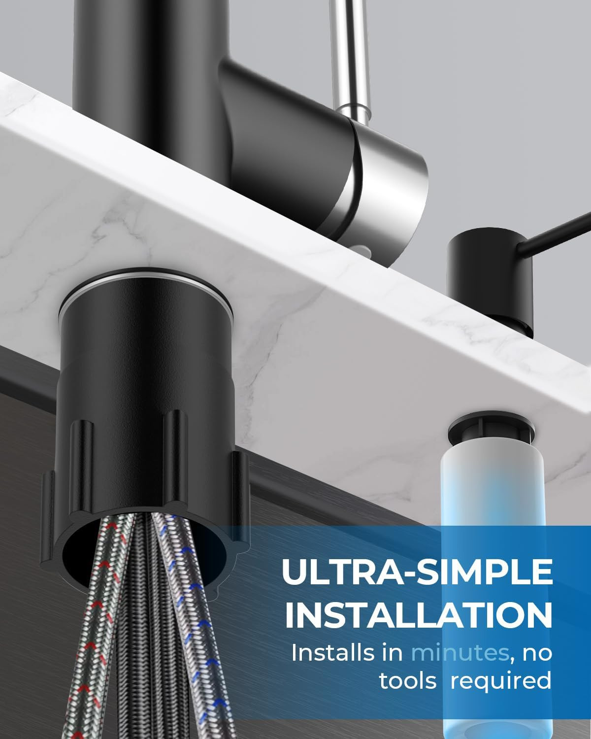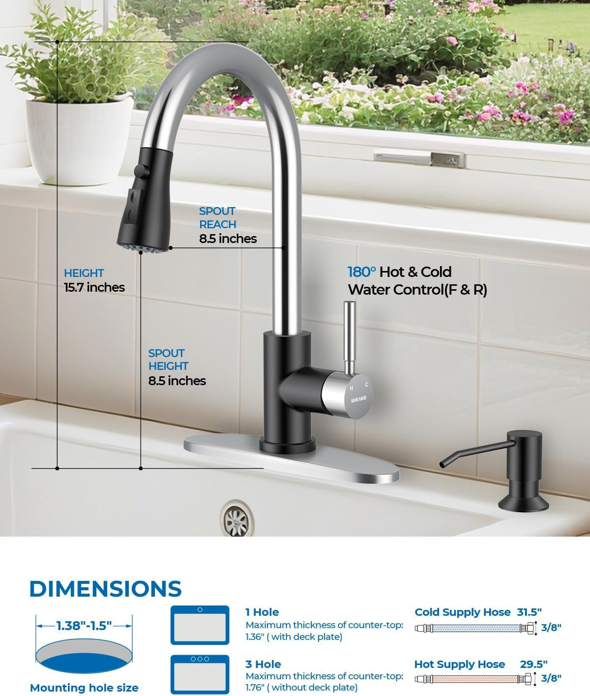 Included Components: Kitchen faucet, Deck plate, Soap Dispenser, Mounting accessory, I