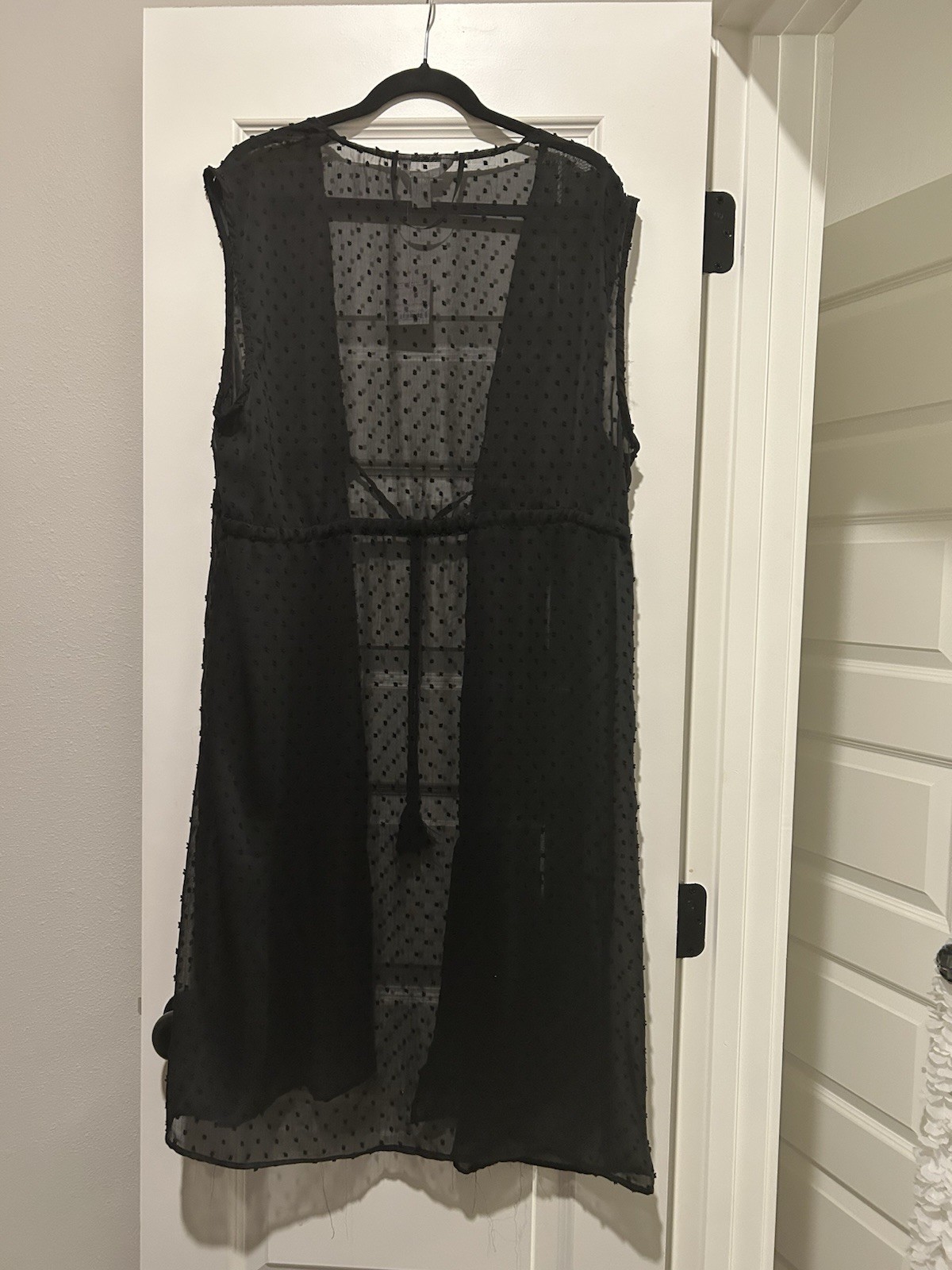 как выглядит Lauren Conrad Womens Black Sheer Kimono /Duster Tassel Tie Waist Boho Festival фото