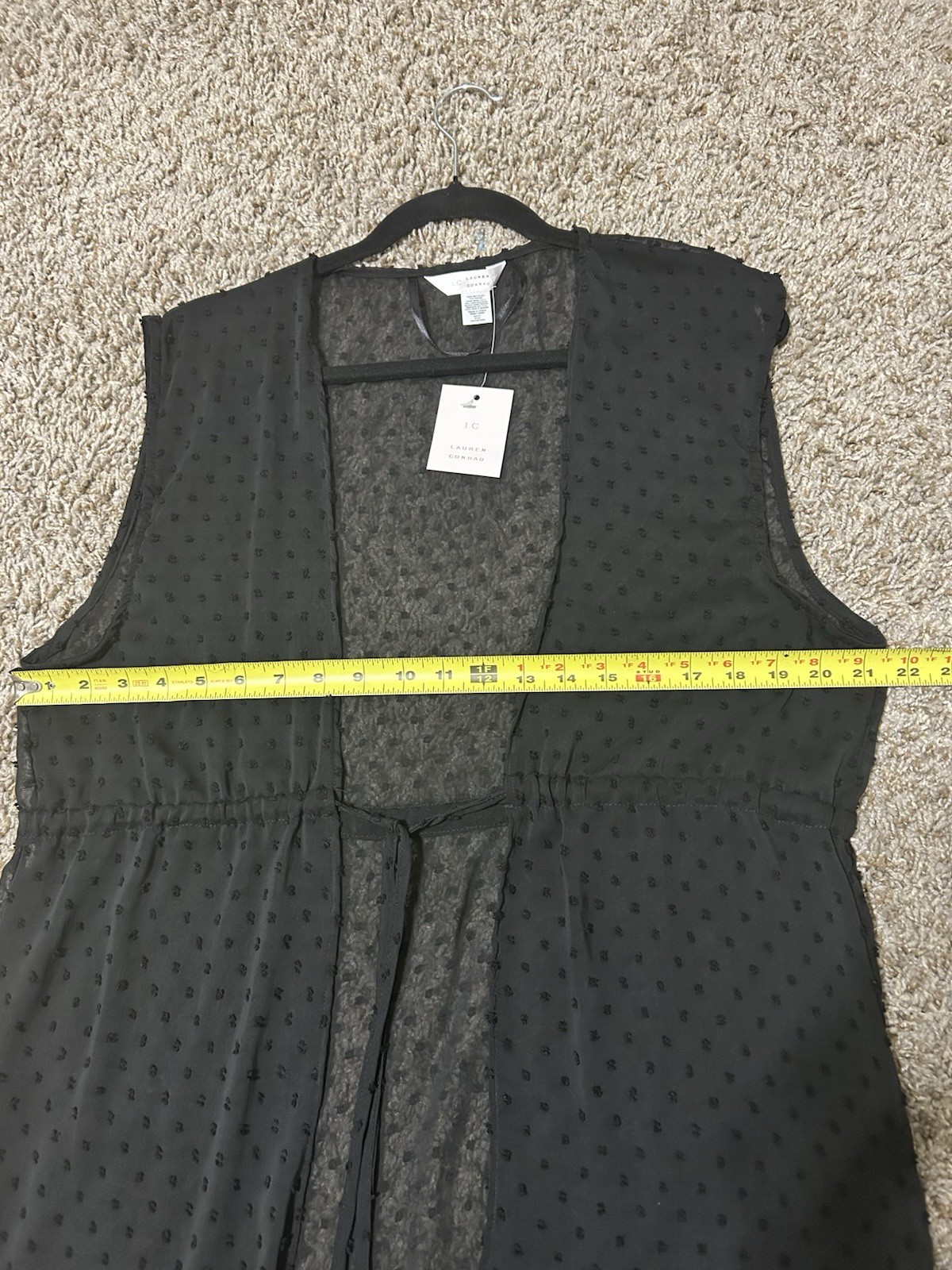 Lauren Conrad Womens Black Sheer Kimono /Duster Tassel Tie Waist Boho Festival