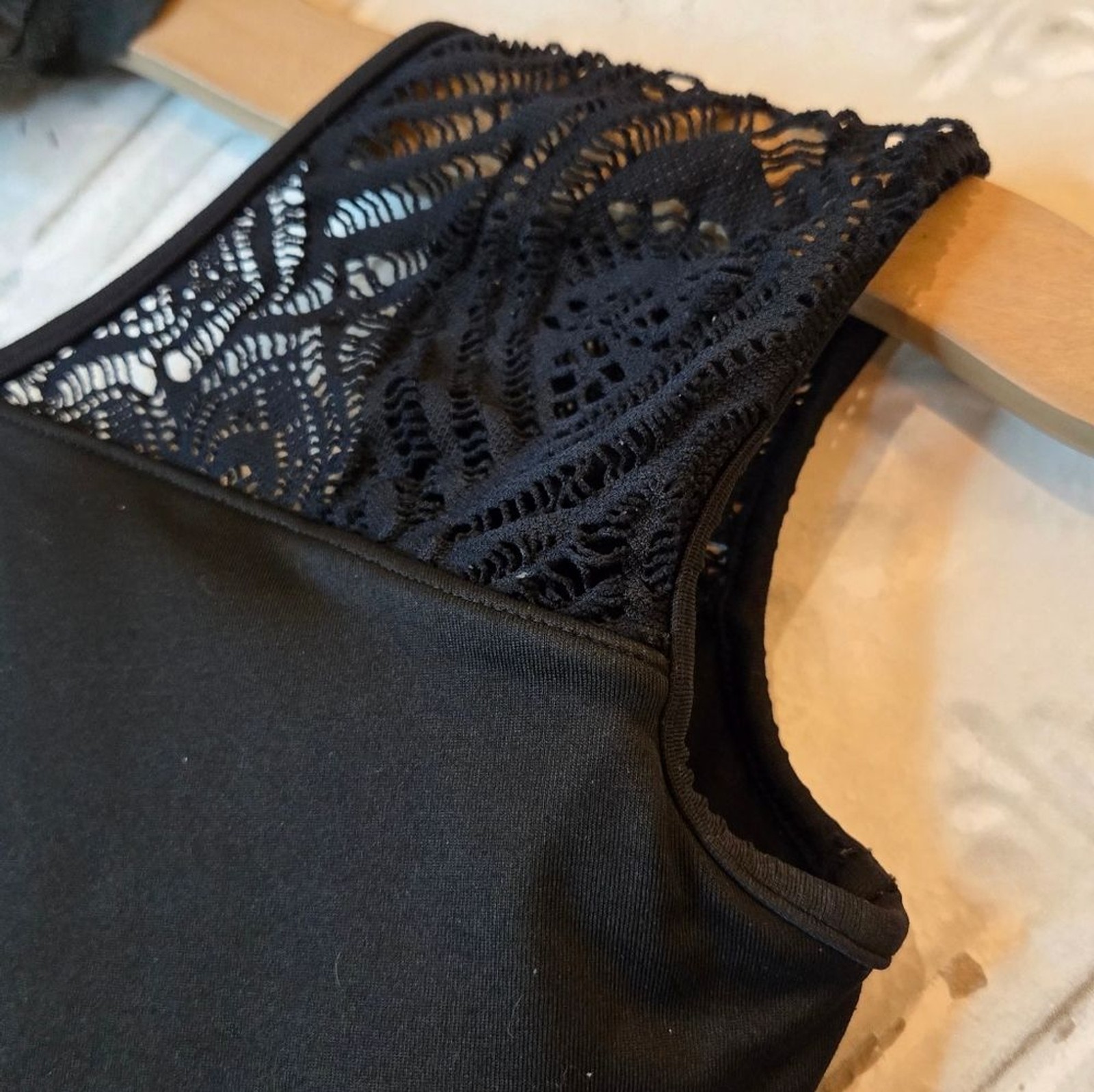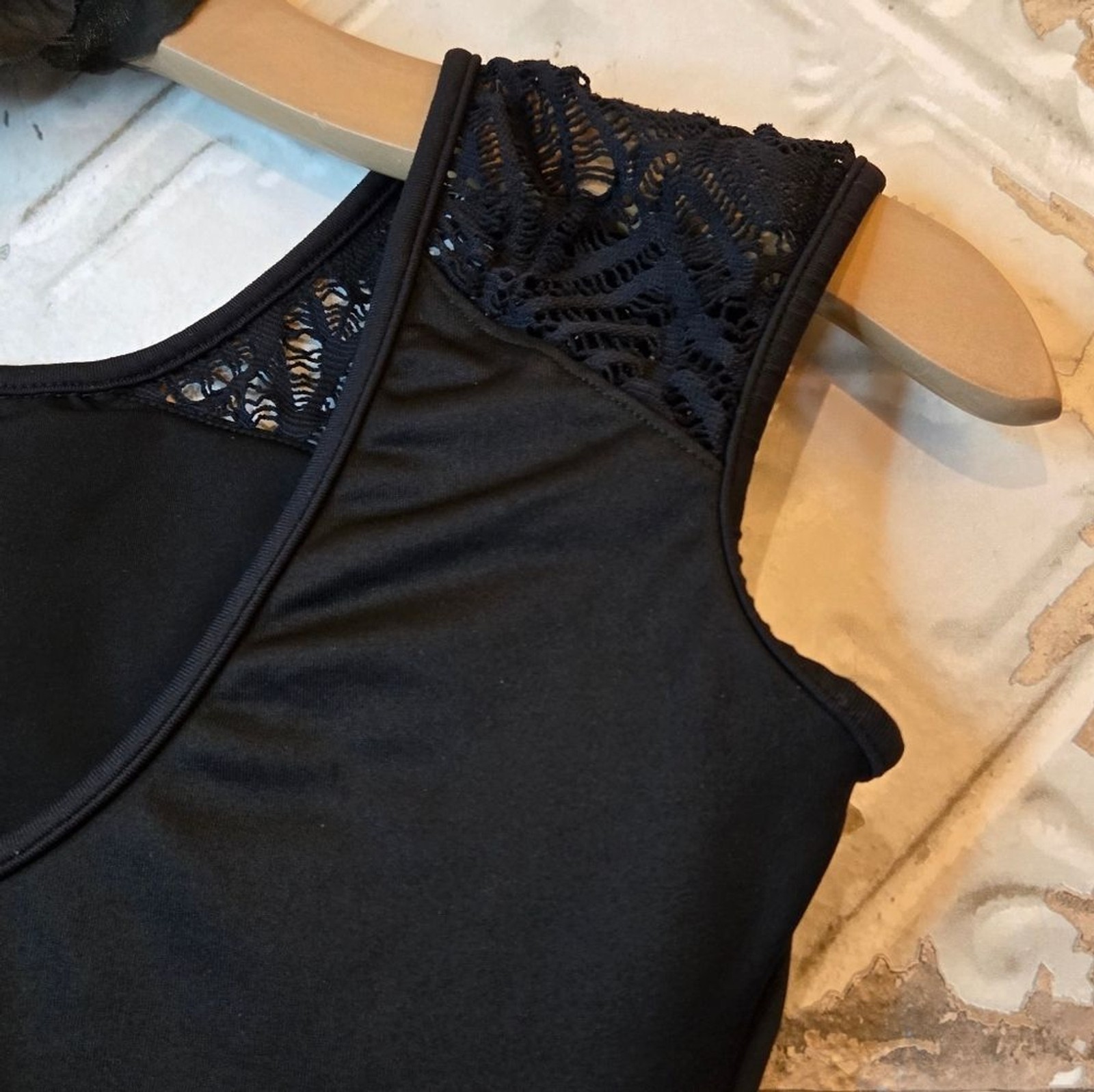 как выглядит Mirella Womens Camisole Dancewear Black Peacock Lace Sleeves Leotard Size P фото