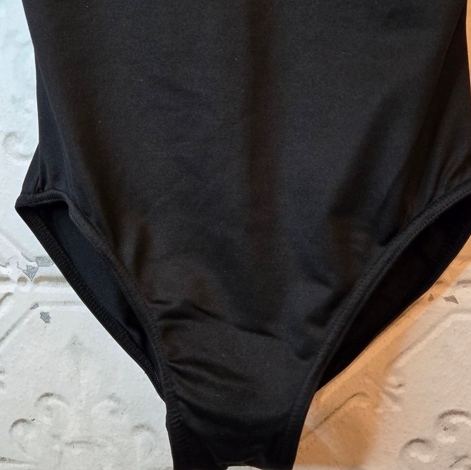 Mirella Women's Camisole Dancewear Black Peacock Lace Sleeves Leotard Size P
