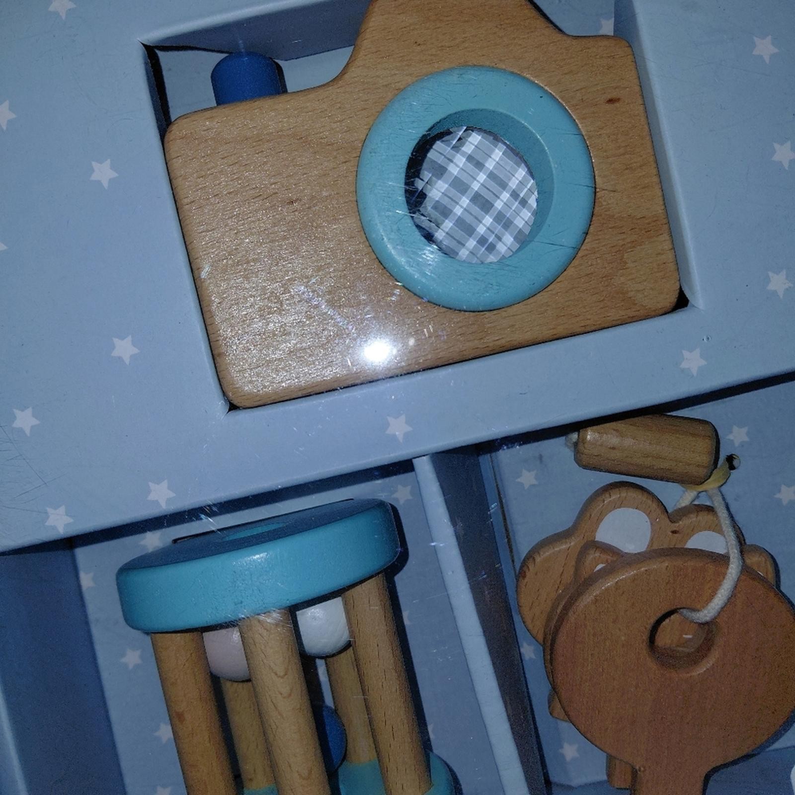 как выглядит Wooden Baby Toy Set with Blue Accents фото