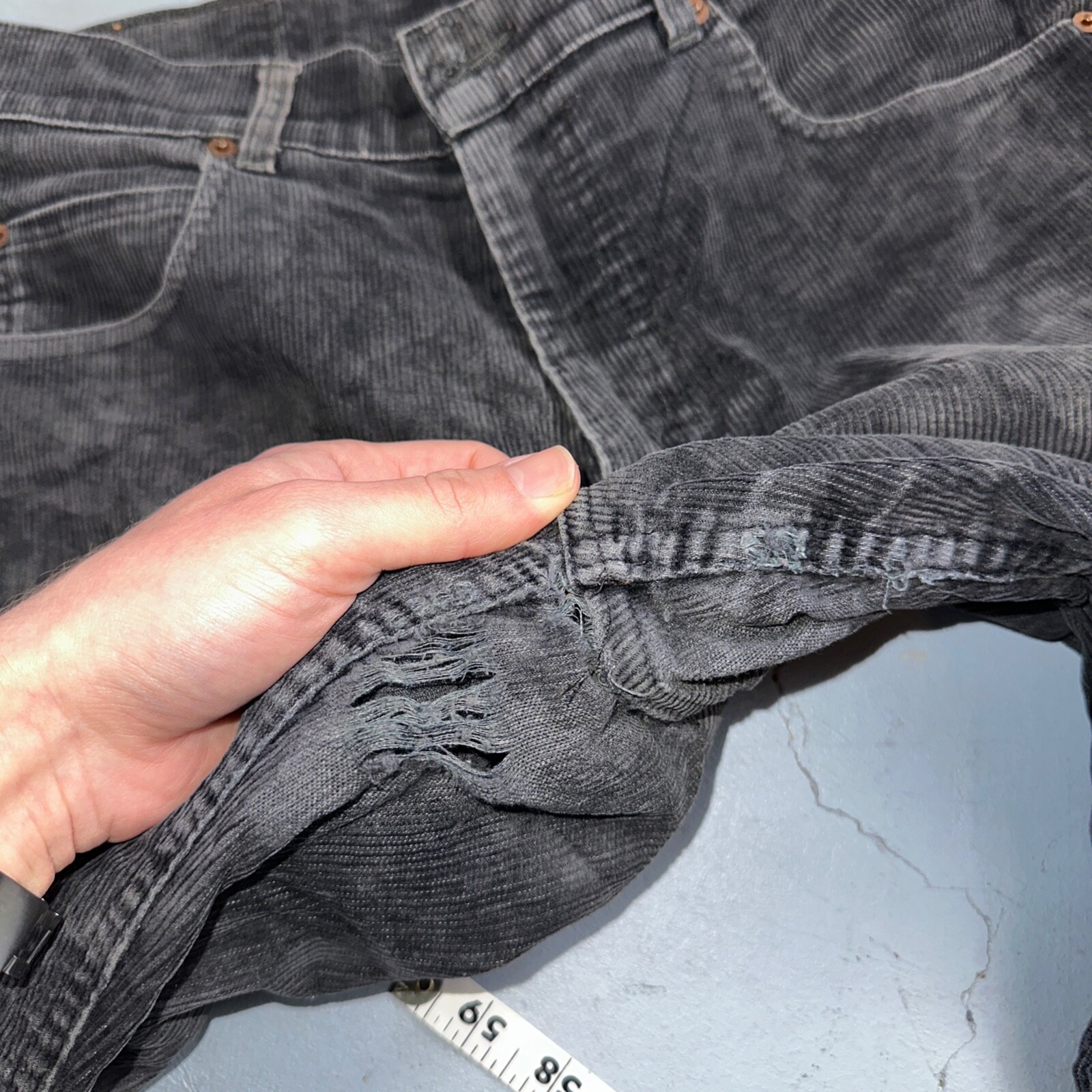 Levis Vintage 630 30x27 Corduroy Trousers Black Straight 90s Missing Button