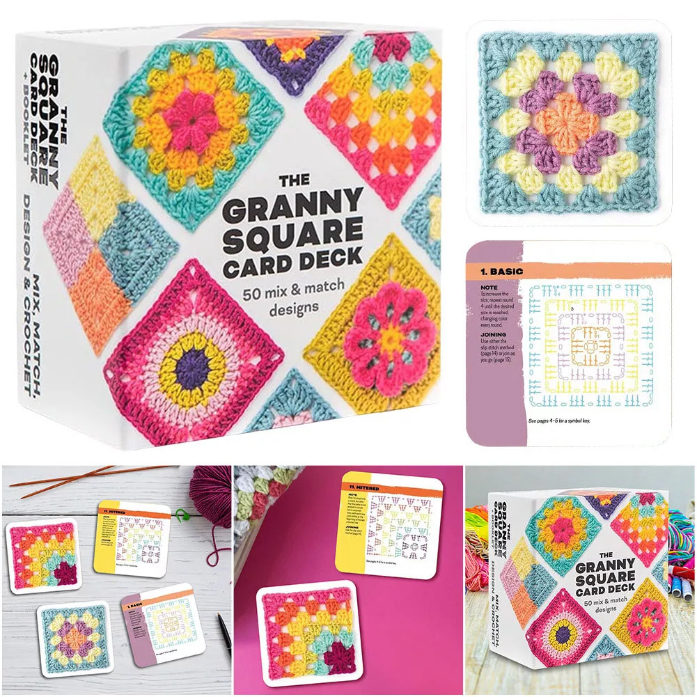 The Granny Square Card Deck 50 Mix Match Designs, Square Card Deck Crochet CE
