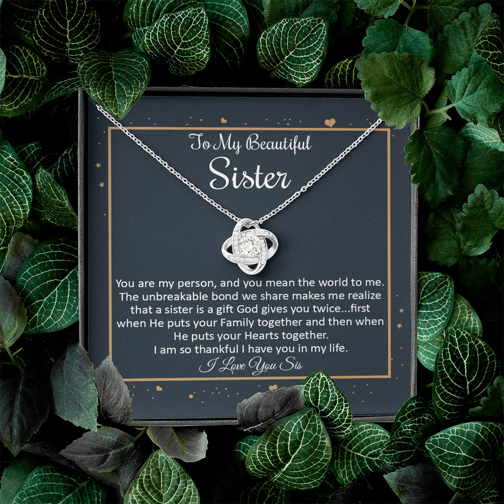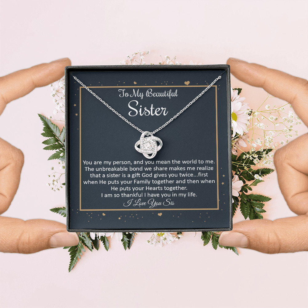 To My Beautiful Sister, Love Knot Necklace From Brother - Sister, Birthday Gifts